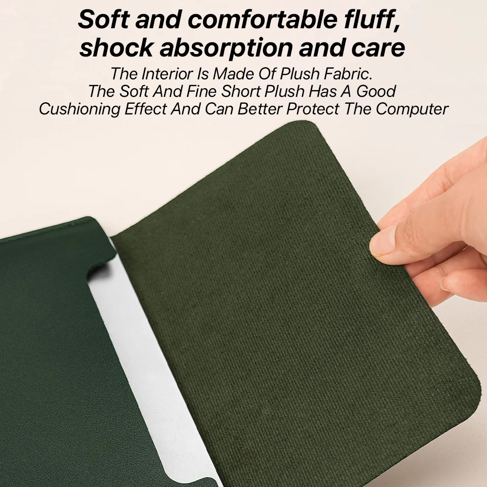 내부는 플러시 원단으로 제작되었습니다. 부드럽고 고운 짧은 플러시는 쿠셔닝 효과가 뛰어나며 컴퓨터를 더 잘 보호할 수 있습니다.