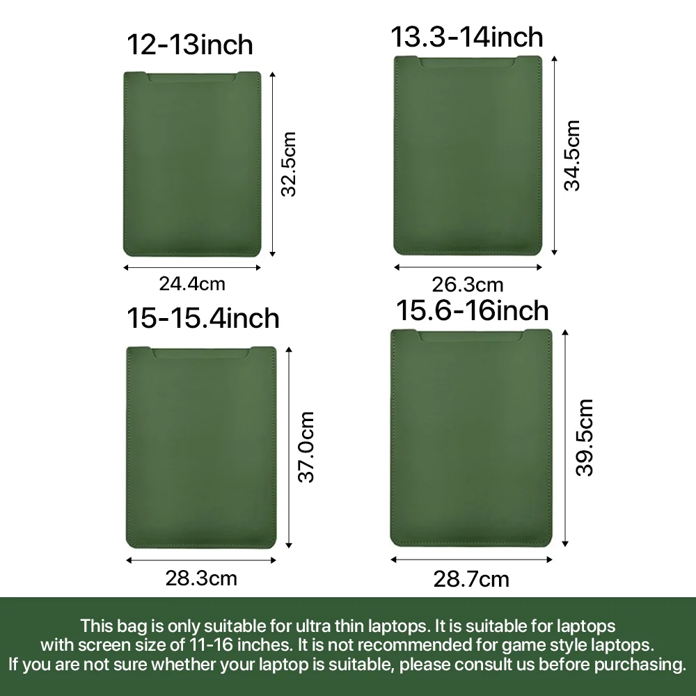 이 가방은 초박형 노트북에만 적합합니다. 화면 크기가 12-16 인치 인 노트북에 적합합니다. 게임 스타일 노트북에는 권장되지 않습니다. 노트북이 적합한 지 확실하지 않은 경우 구입하기 전에 문의하십시오.