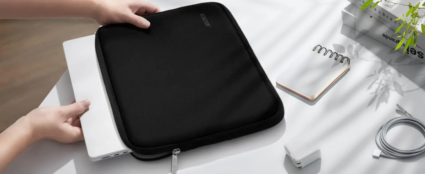 슬림하고 가볍습니다. 노트북을 벌크하지 않고 서류 가방, 배낭 또는 기타 가방에 쉽게 밀어 넣을 수 있습니다. 슬리브의 상단 로딩 지퍼가 부드럽게 미끄러 져 랩톱 컴퓨터에 편리하게 액세스 할 수 있습니다.