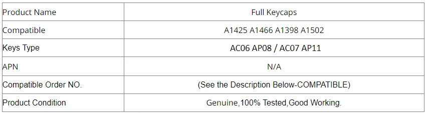 A1425 A1466 A1502 A1398 포인트 AC06 AP08 / AC07 AP11 두 종류의 키 캡, 두 개는 호환되지 않습니다.