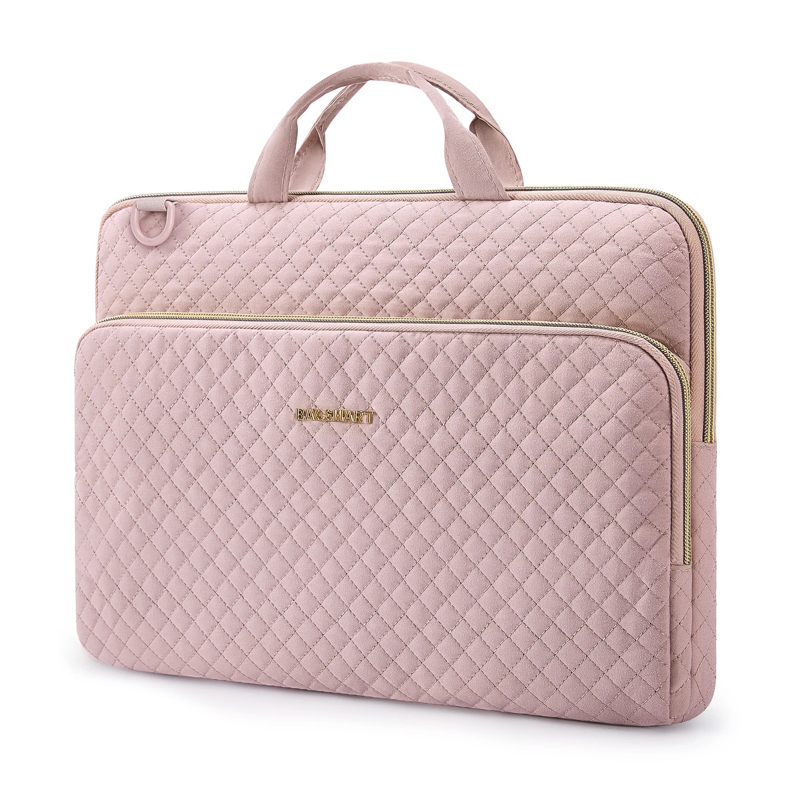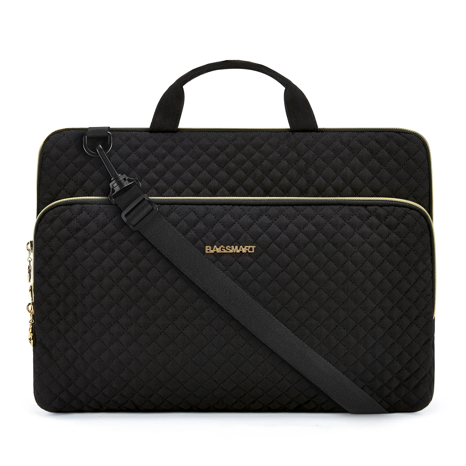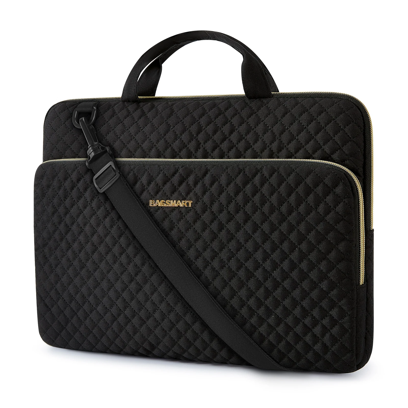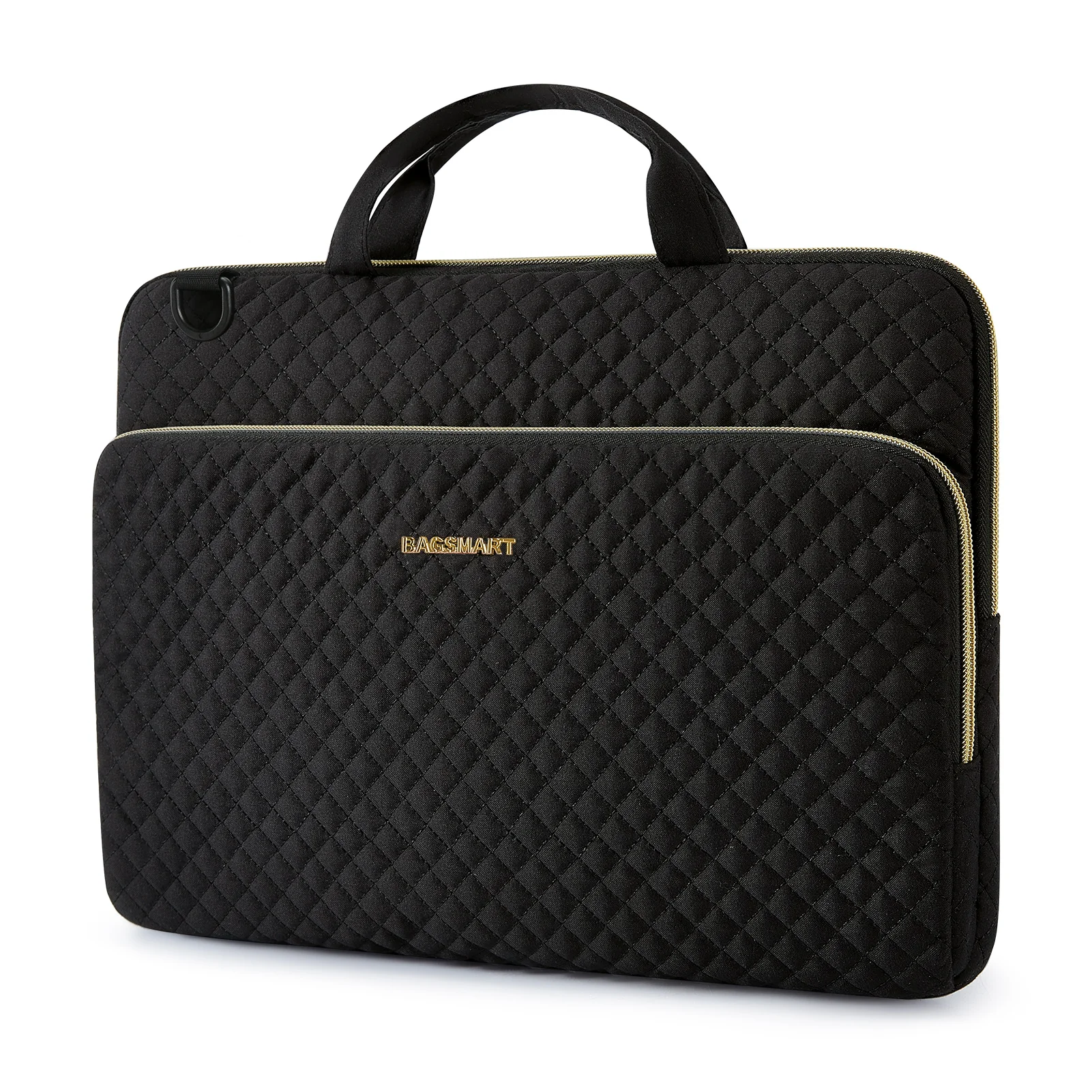 The BAGSMART 13-15.6 inch laptop sleeve brings out the best of our quilting process. This laptop sleeve case emphasizes the protection and aesthetics at the same time. Three layers" protection with waterproof layer, shockproof layer and fluffy fabric layer, makes this laptop sleeve bag can absorb impacts effectively, reduce damages caused by accidentally bumping and protect your notebook from scratches.