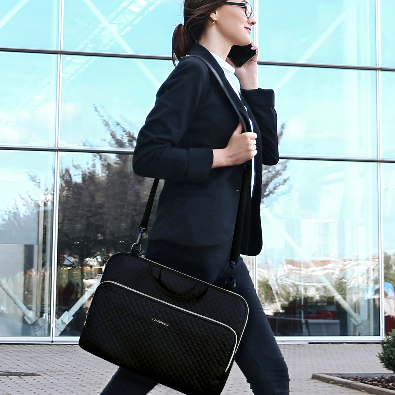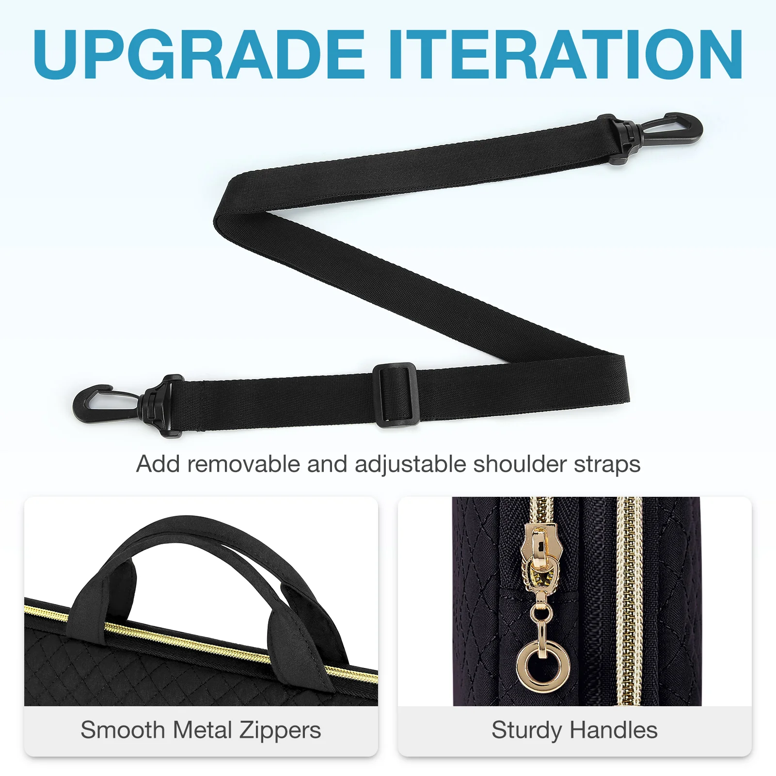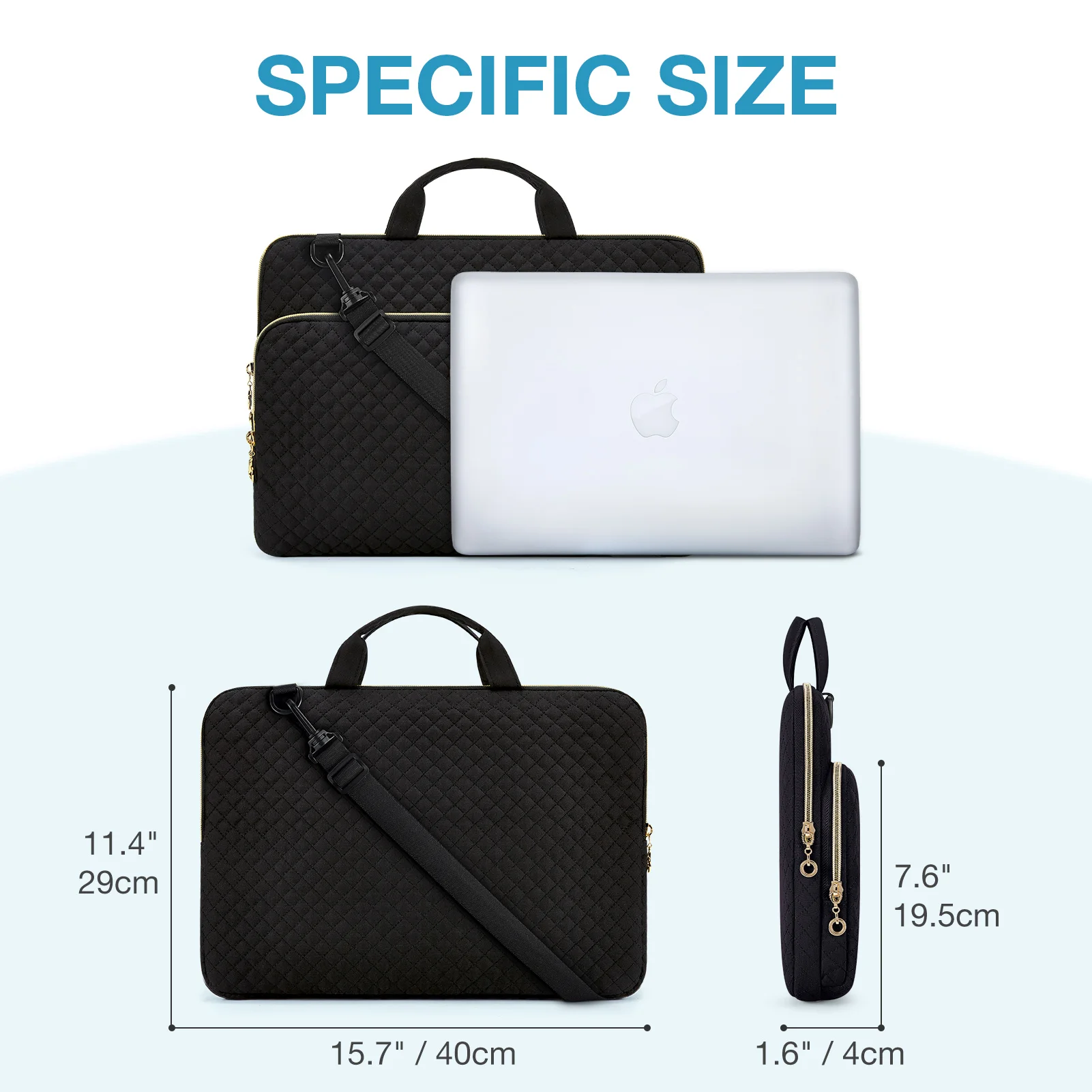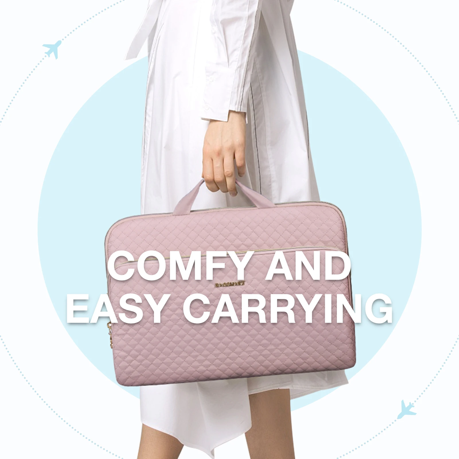 The BAGSMART 13-15.6 inch laptop sleeve brings out the best of our quilting process. This laptop sleeve case emphasizes the protection and aesthetics at the same time. Three layers" protection with waterproof layer, shockproof layer and fluffy fabric layer, makes this laptop sleeve bag can absorb impacts effectively, reduce damages caused by accidentally bumping and protect your notebook from scratches.