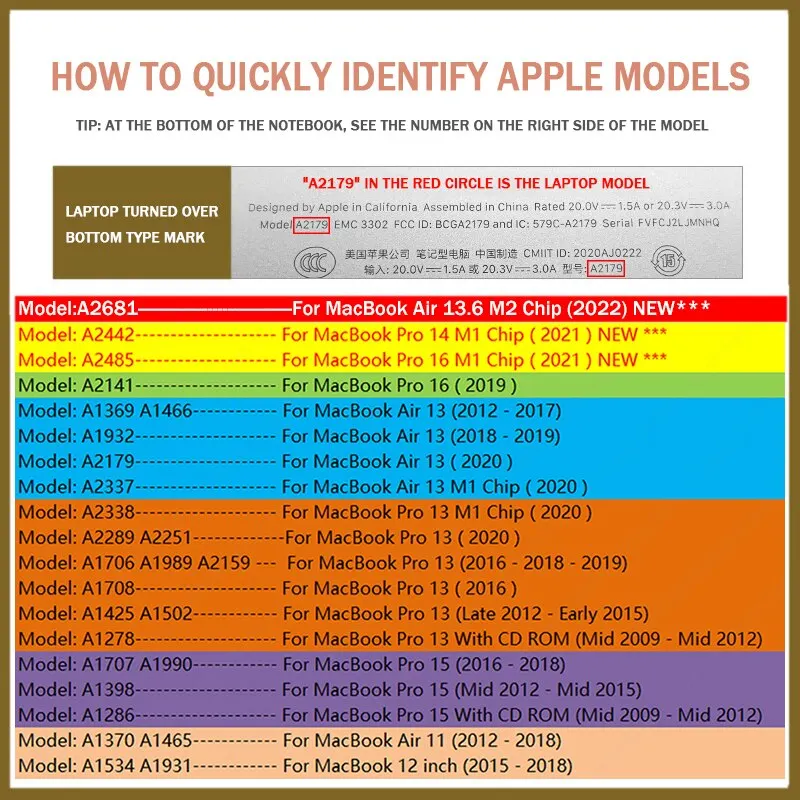 알림: 이것은 매우 중요합니다!!! 친애하는 고객, 노트북 케이스를 주문하기 전에 크기와 일치하도록 아래 목록에서 모델 번호를 두 배로 확인하십시오 (랩톱에서 항상 모델 번호를 찾을 수 있음). 이 하드 쉘 케이스는 맥북 용으로 만 설계되었습니다. 다른 랩톱에는 사용하지 마십시오.