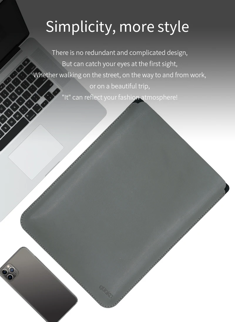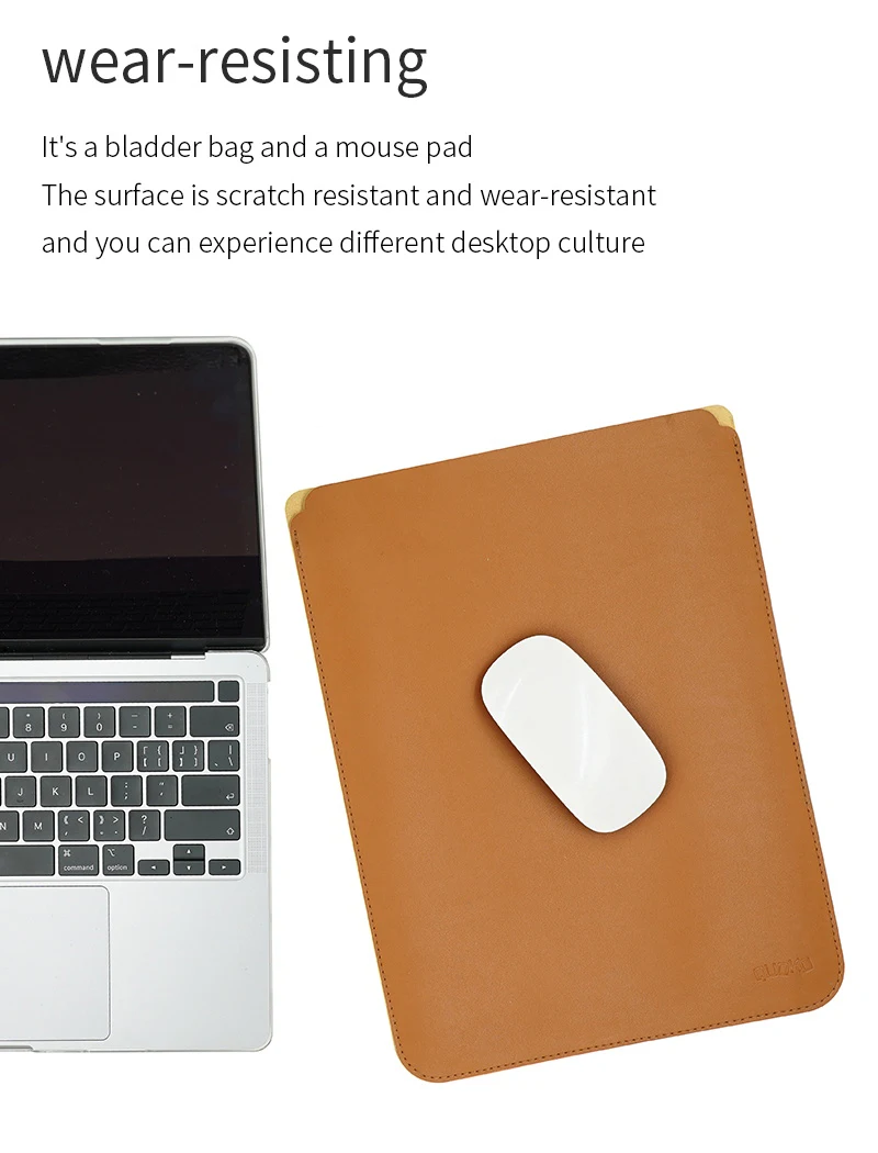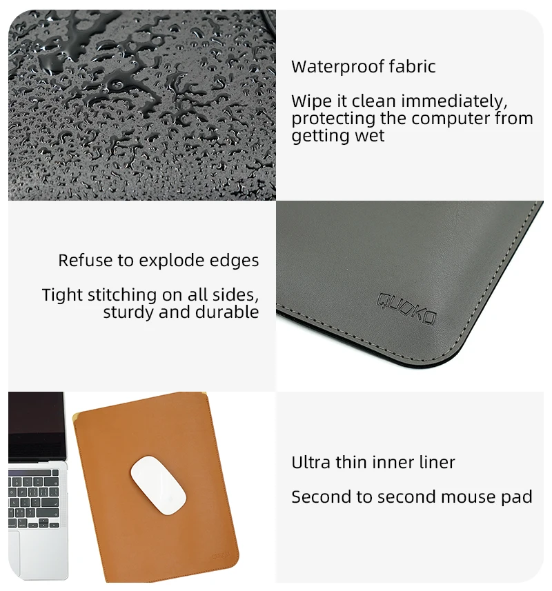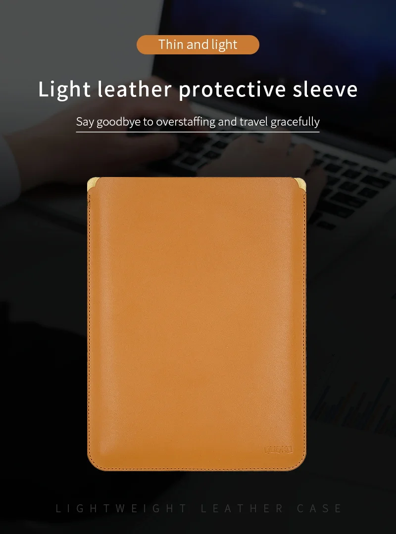 이 노트북 가방은 PU 가죽 소재로 만들어졌으며 가볍고 내구성이 뛰어납니다. 방수 및 내마모성.