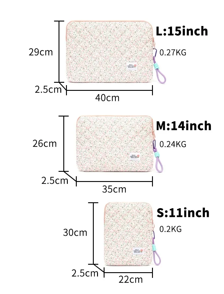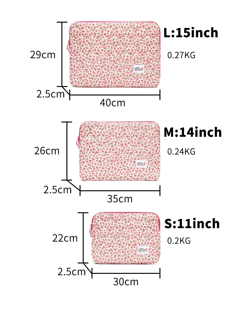 Ins 귀여운 꽃 노트북 슬리브 컴퓨터 휴대용 케이스 가방 11 13 14 15.3 15.6 인치 휴대용 테이블 커버 가방 맥 북 HP ASUS