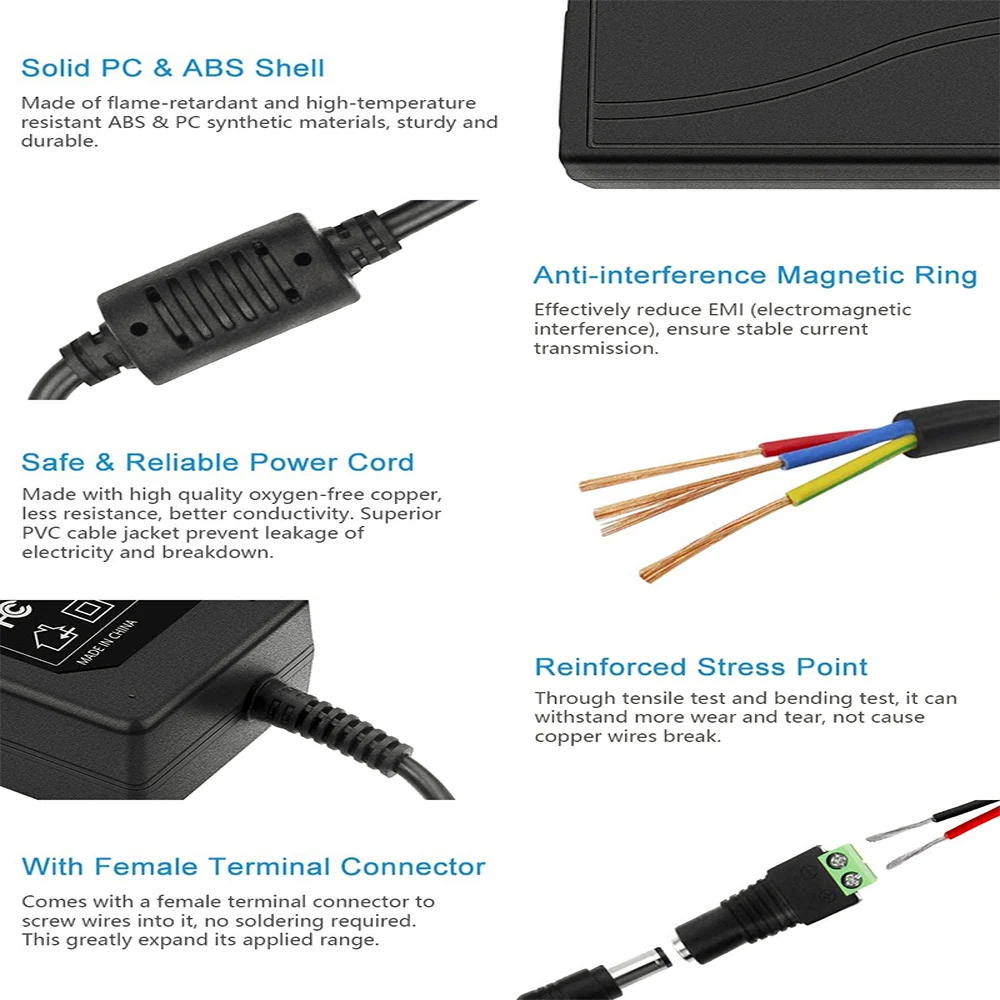 【안전 보호 】 Auplf 24v 전원 공급 장치 어댑터는 자동 과부하 차단, 과전압 차단, 과전류 차단, 과열 방지, 안전 보호 기능이 내장되어 있습니다. 및 단락 보호 기능. 24v 전원 공급 장치 전원 켜기, 전송, 수신 또는 전원 끄기 중에 전압 변동이 거의없는 전원 공급 장치.