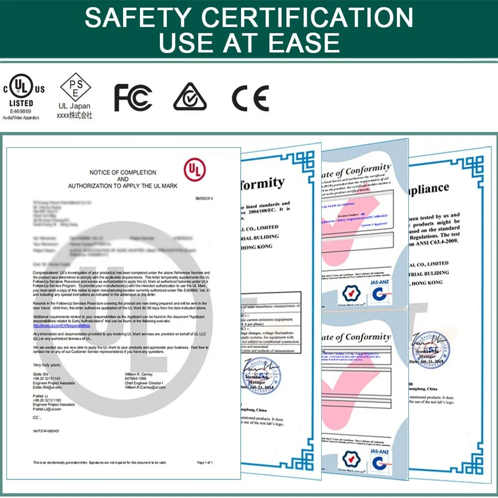안전-난연성 외장 쉘 및 전원 공급 장치 과열, 과부하, 과충전, 단락으로부터 보호하는 내장형 안전 장치가 제공됩니다.