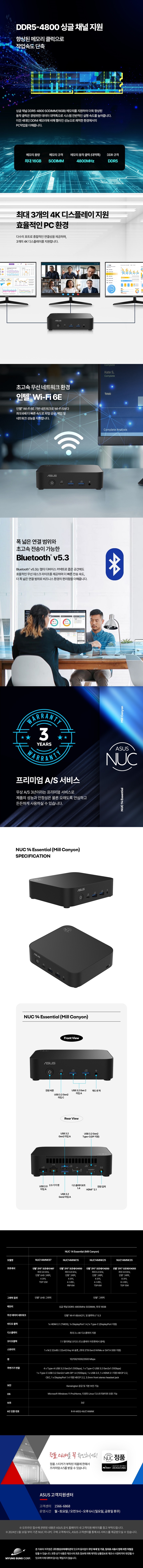 ASUS NUC 14 Essential Mill Canyon NUC14MNK15 (베어본) 미니PC 사무용PC 산업용PC