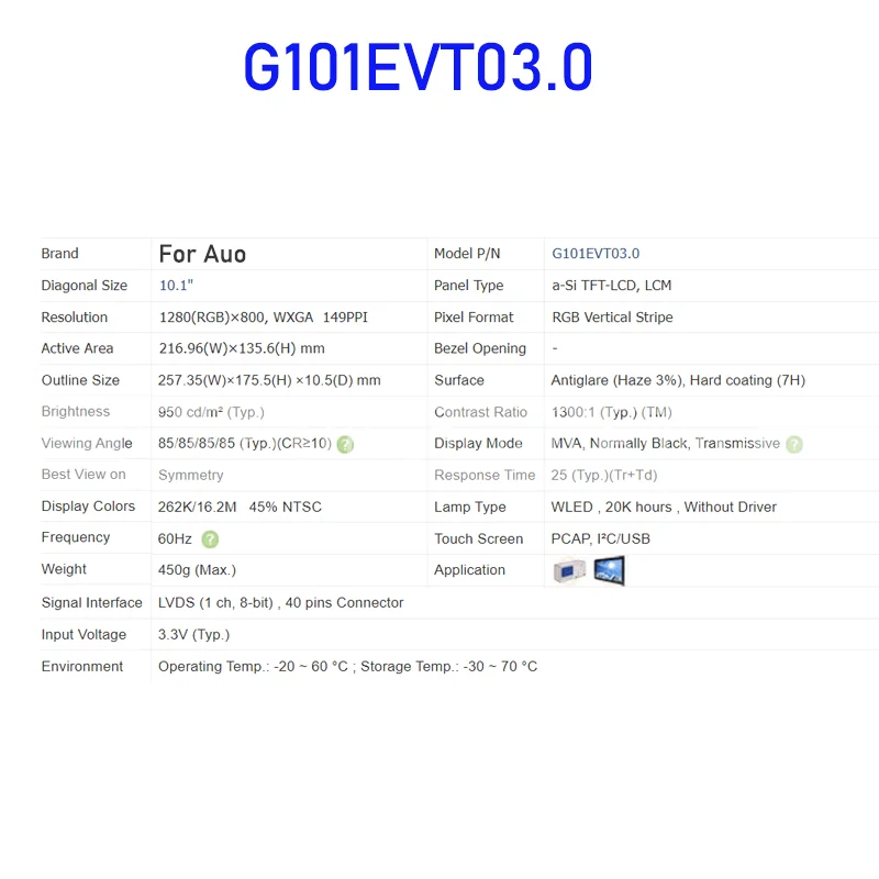 터치 스크린 디스플레이 패널 포함 산업용 LCD 스크린 Auo용 100 G101EVT03.0 10.1 인치