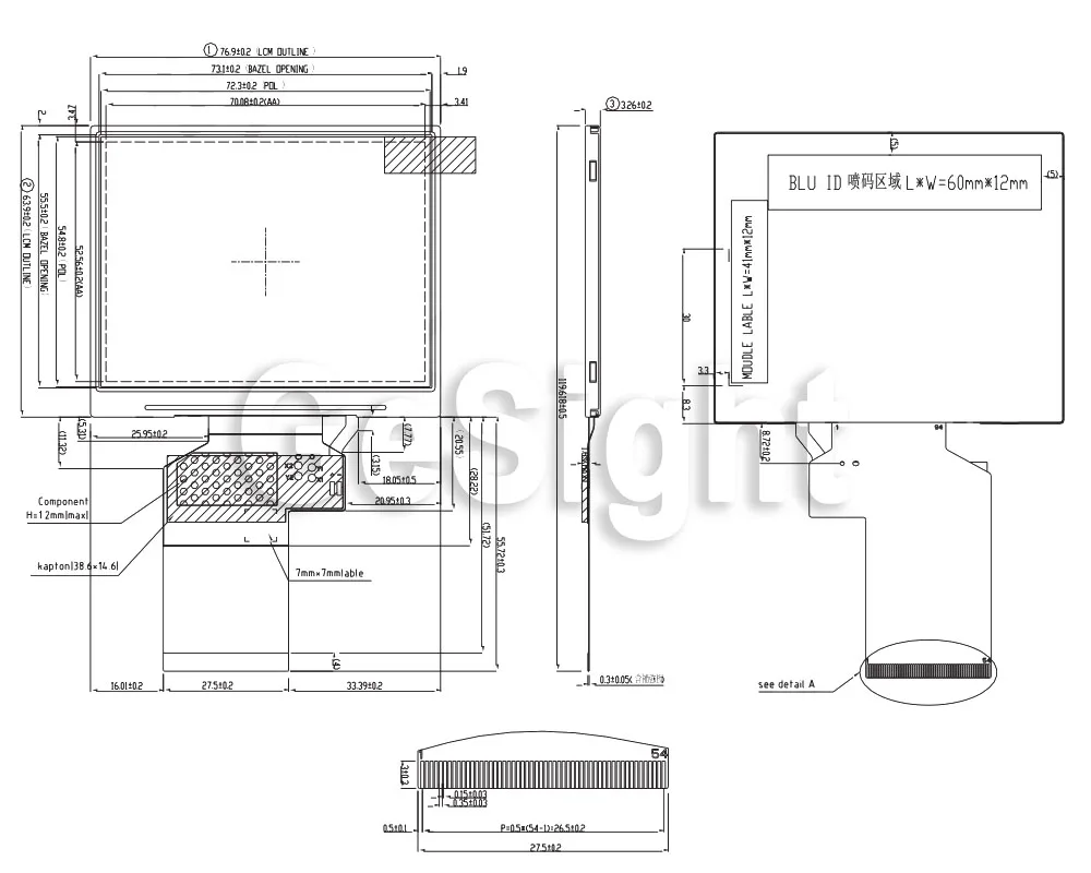 디스플레이 데이터 시트, IC 데이터 시트, 초기 코드와 같은 자세한 사양은 당사에 문의하십시오.
