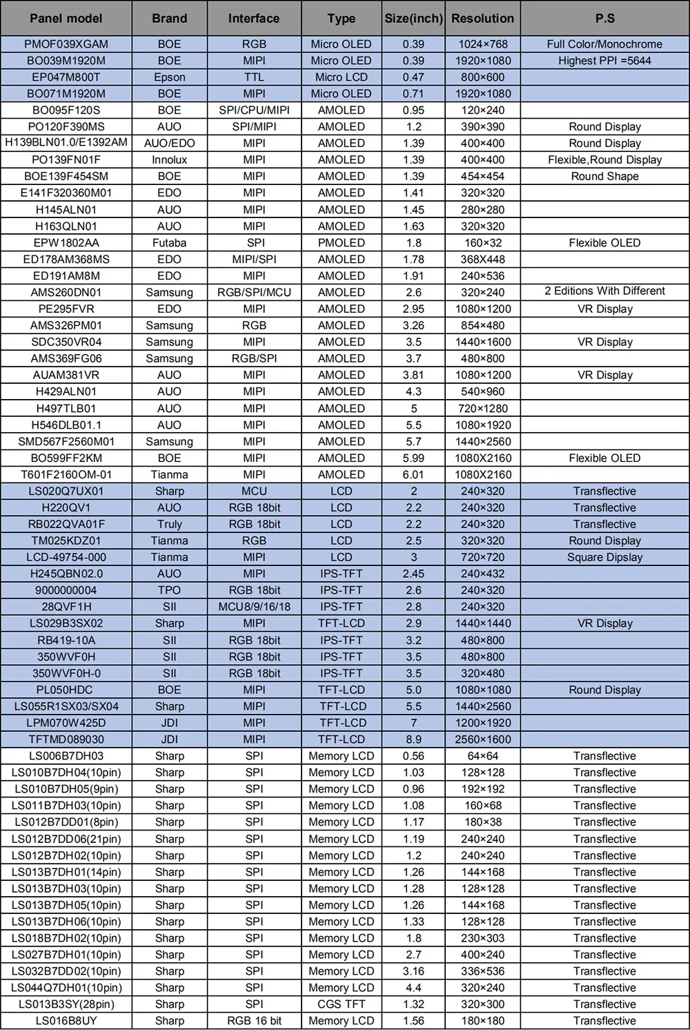 대부분의 디스플레이 제품에서 데이터 시트 및 코드를 사용할 수 있으므로 언제든지 문의하십시오.