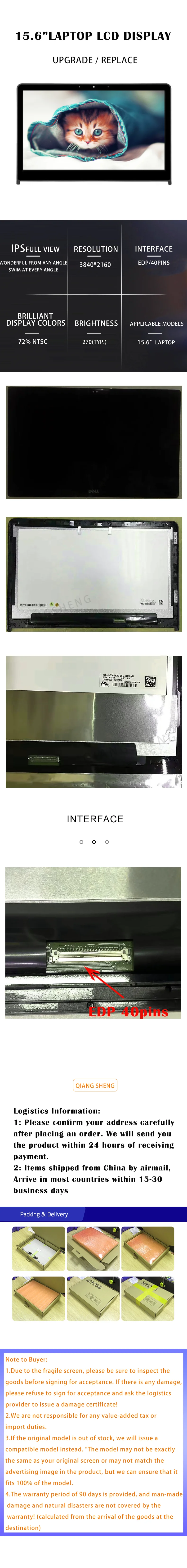 Dell Inspiron 15 7557 7559 P57F P57F002 156 노트북 UHD LCD 터치 디스플레이 새로운 교체 LP156UD2SPA1