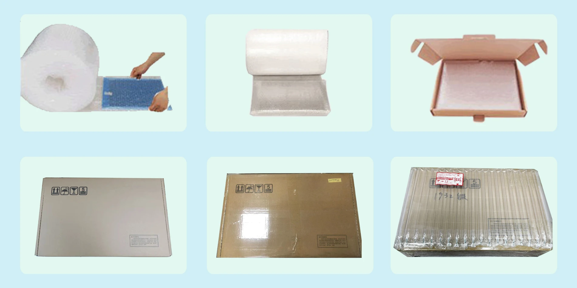 배송 중 안전을 위해 스크린이 조심스럽게 포장됩니다.