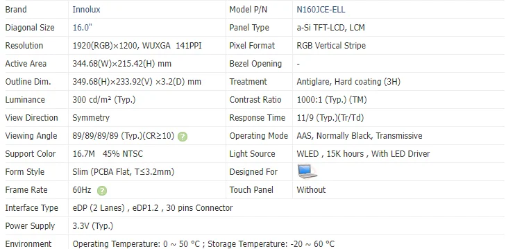 N160JCE-ELL 매트릭스 디스플레이 패널 노트북 LCD 교체 화면 FHD IPS 30 핀