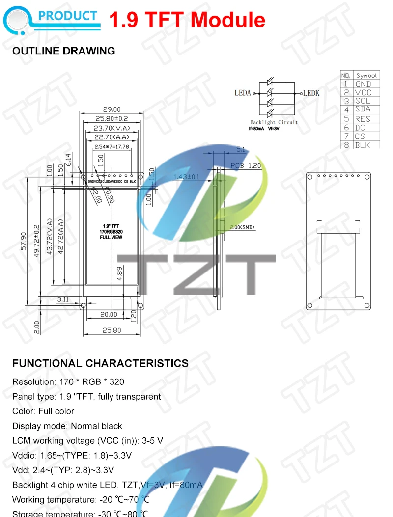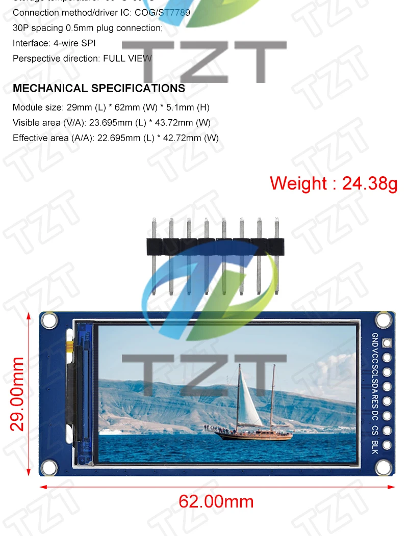 IPS 풀 앵글 TFT 디스플레이 스크린 LCD 스크린 컬러 디스플레이 모듈 SPI 직렬 포트 고화질 170x320 ST778