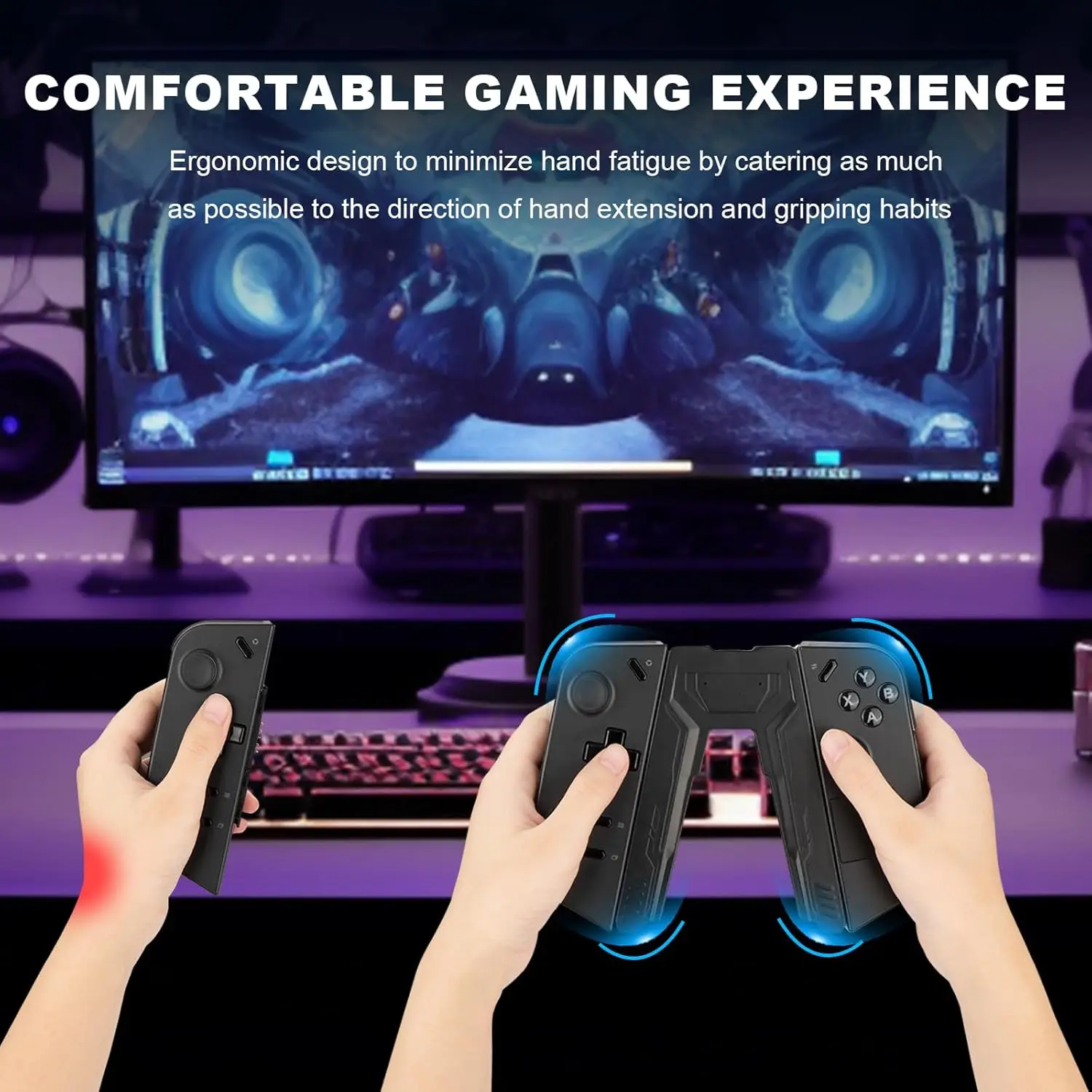 【Ergonomic Comfort Design】Our Legion Go Controller Charging Grip features an inverted V-shaped design that aligns with the natural grip of your hand. This ergonomic structure reduces hand fatigue, allowing for longer and more comfortable gaming sessions.