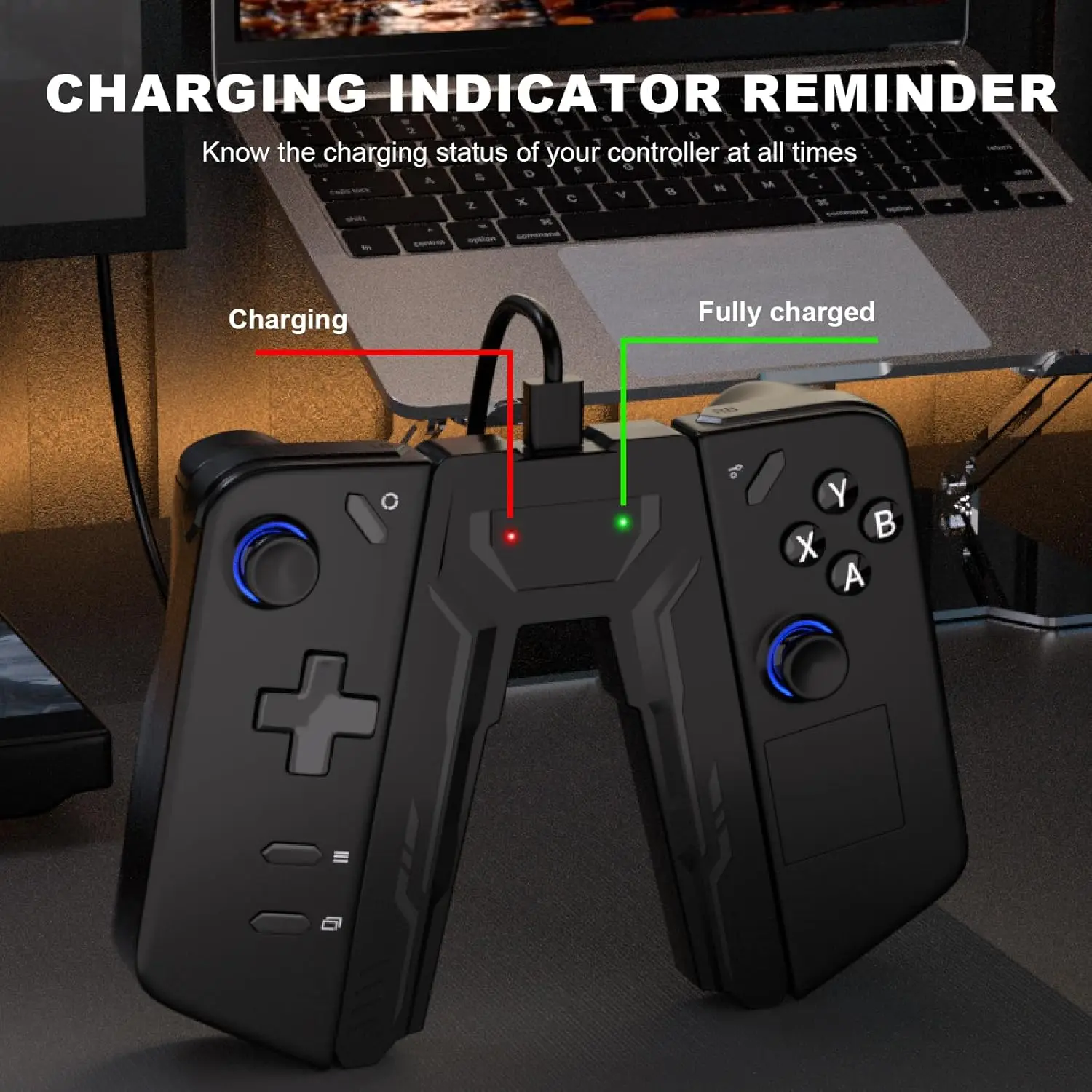 【Convenient Charging Indicator Lights】Simply attach your controller to the Legion Go Controller Charging Grip and connect it to a power supply. The red light shows that charging is in progress, while a green light indicates a full charge, making it easy to monitor your controller’s battery status.