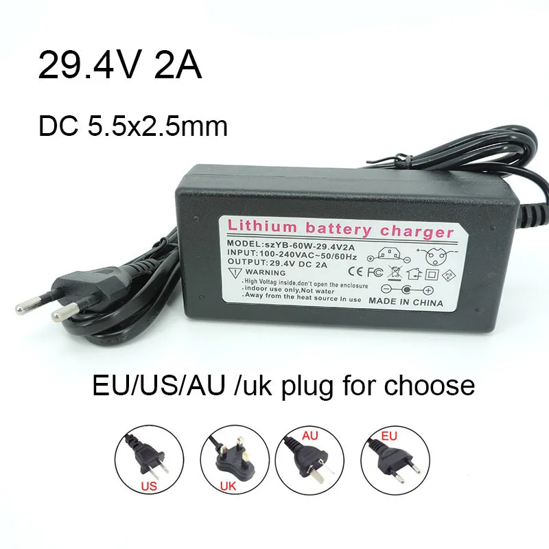 24V 25.2V 25.9V 리튬 이온 배터리 충전기 용 29.4V 2A 리튬 배터리 충전기