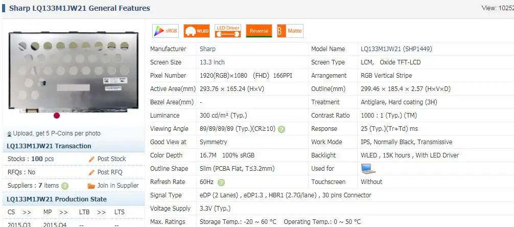 새로운 13.3 인치 LQ133M1JW21 IPS LCD 화면 EDP 30PIN 60HZ FHD 1920*1080 100% sRGB 노트북 교체 디스플레이 패널