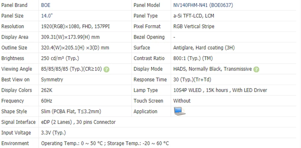 이 링크 된 제품은 14.0 인치 FHD 1920X1080 초박형 노트북 디스플레이. 나사 구멍으로. 컴퓨터와 매트릭스 사진을주의 깊게 확인하십시오. 도움이 필요하면 판매자에게 문의하십시오. 매트릭스 모델 및 사진을 제공하십시오 (노트북 모델은 필요하지 않습니다)