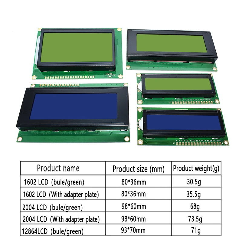 LCD1602 LCD 1602 2004 12864 모듈 블루 그린 스크린 16x2 20X4 문자 LCD 디스플레이 모듈 HD44780 컨트롤