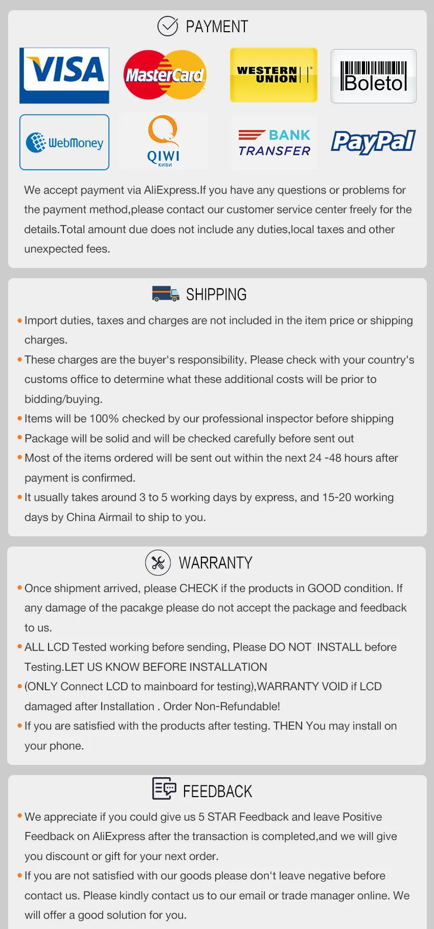 5. 가격: 합리적이고 경쟁력있는 가격6. 품질 관리: 모두 배달 전에 테스트됩니다.7. 판매 후 서비스: 100% 만족도 우수