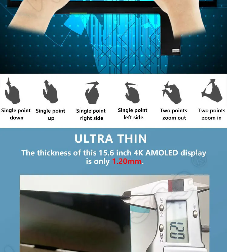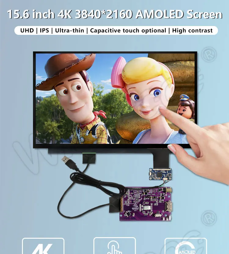 Wisecoco 15.6 인치 4k 올레드 디스플레이 IPS 아몰레드 UHD 라즈베리 파이 컨트롤러 보드 60HZ 3840x2160 노트북 보조 터치 스크린