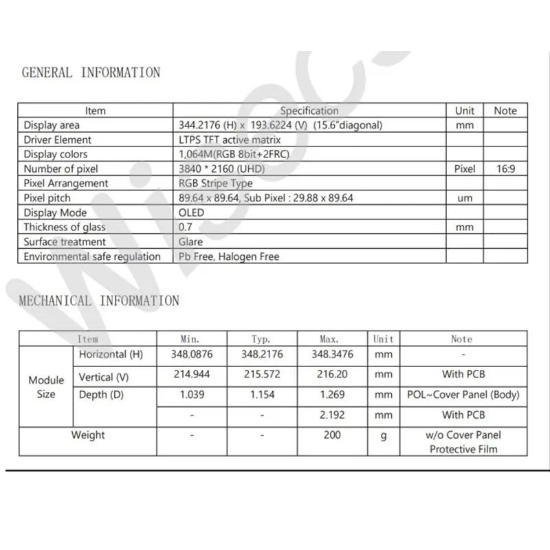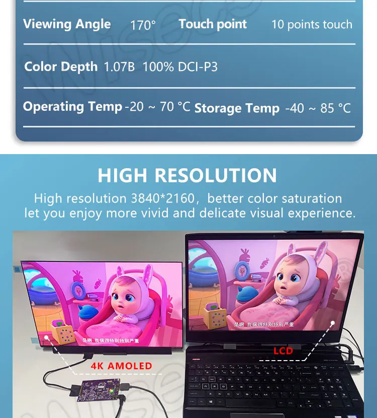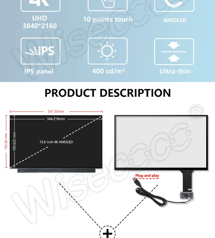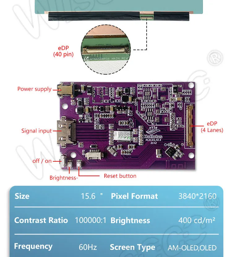 Wisecoco 라즈베리 파이 컨트롤러 보드용 OLED 디스플레이 IPS 아몰레드 UHD 60HZ 3840x2160 노트북 보조