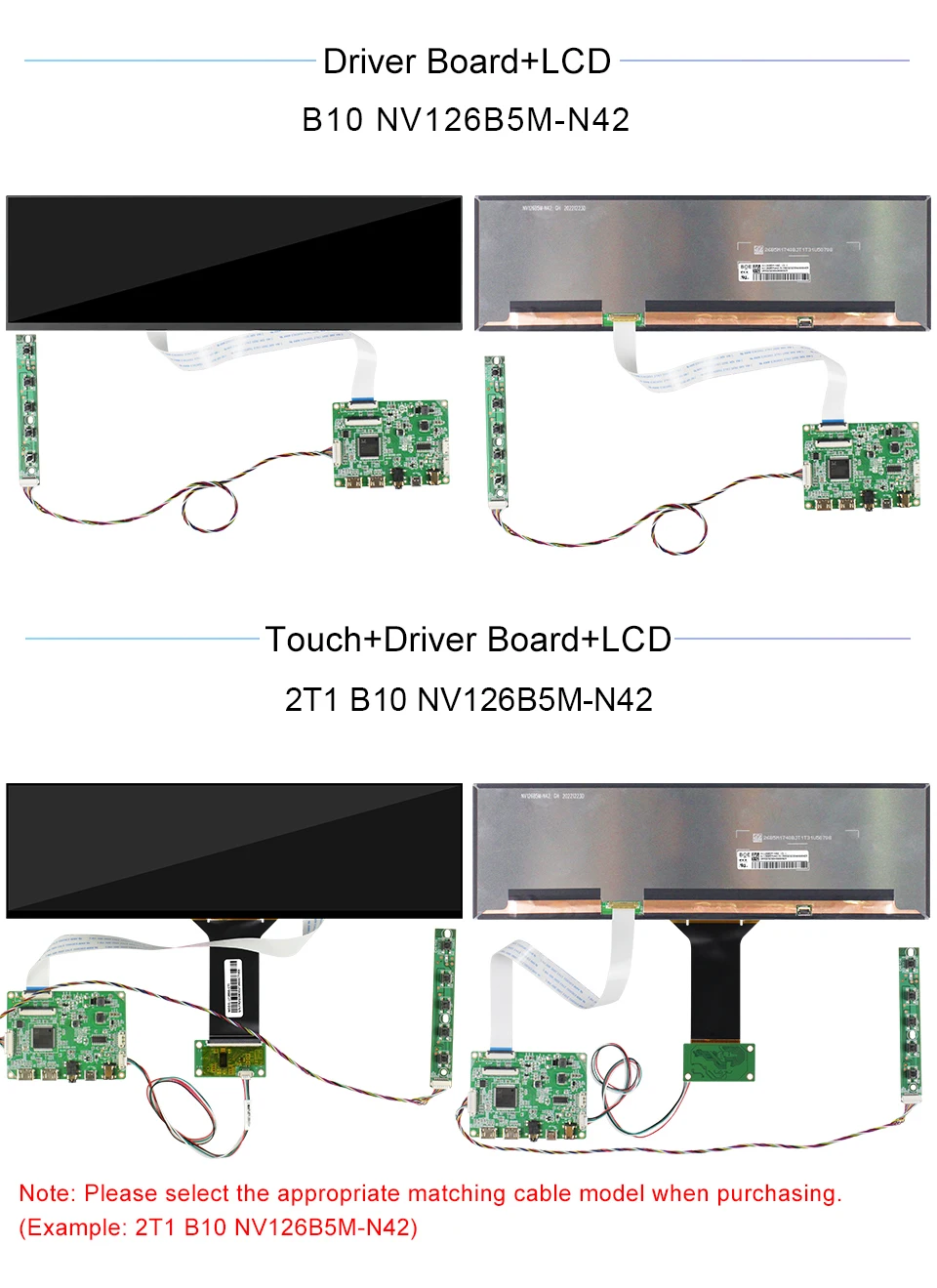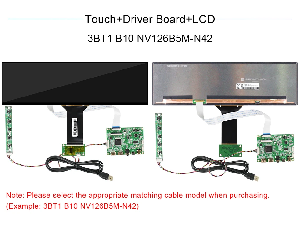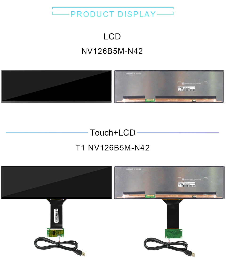 보드 포함 오리지널 BOE 12.6 인치 NV126B5M-N42 NV126B5M 1920x515 SRGB TFT 터치 LCD 디스플레이 화면 eD