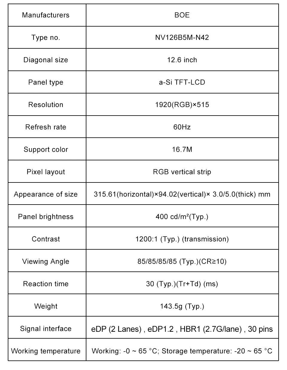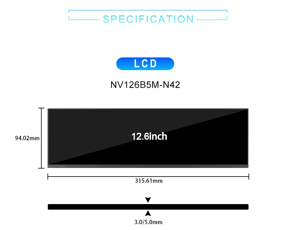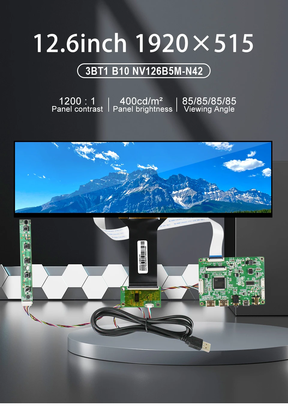 12.6 인치 1920x515 해상도 EDP 30PIN 인터페이스 400 밝기