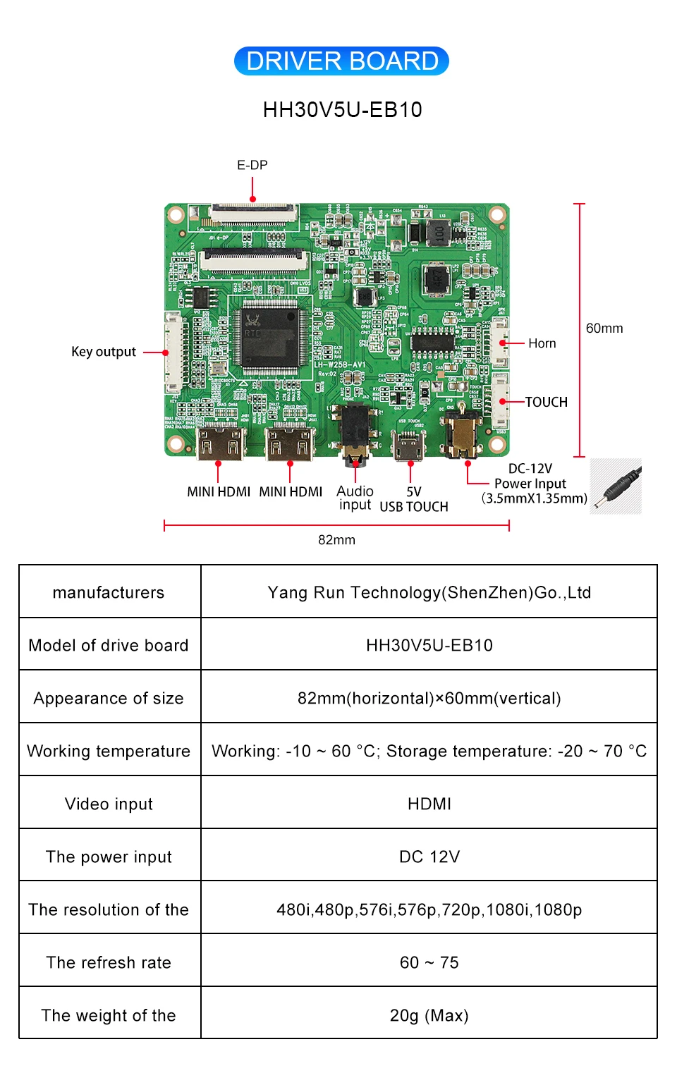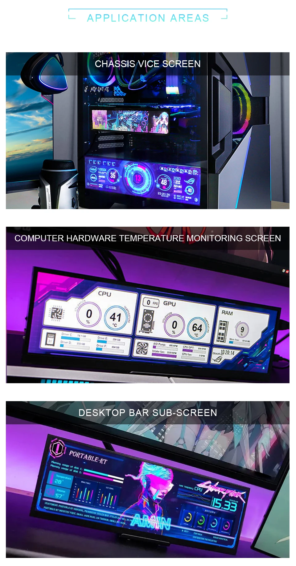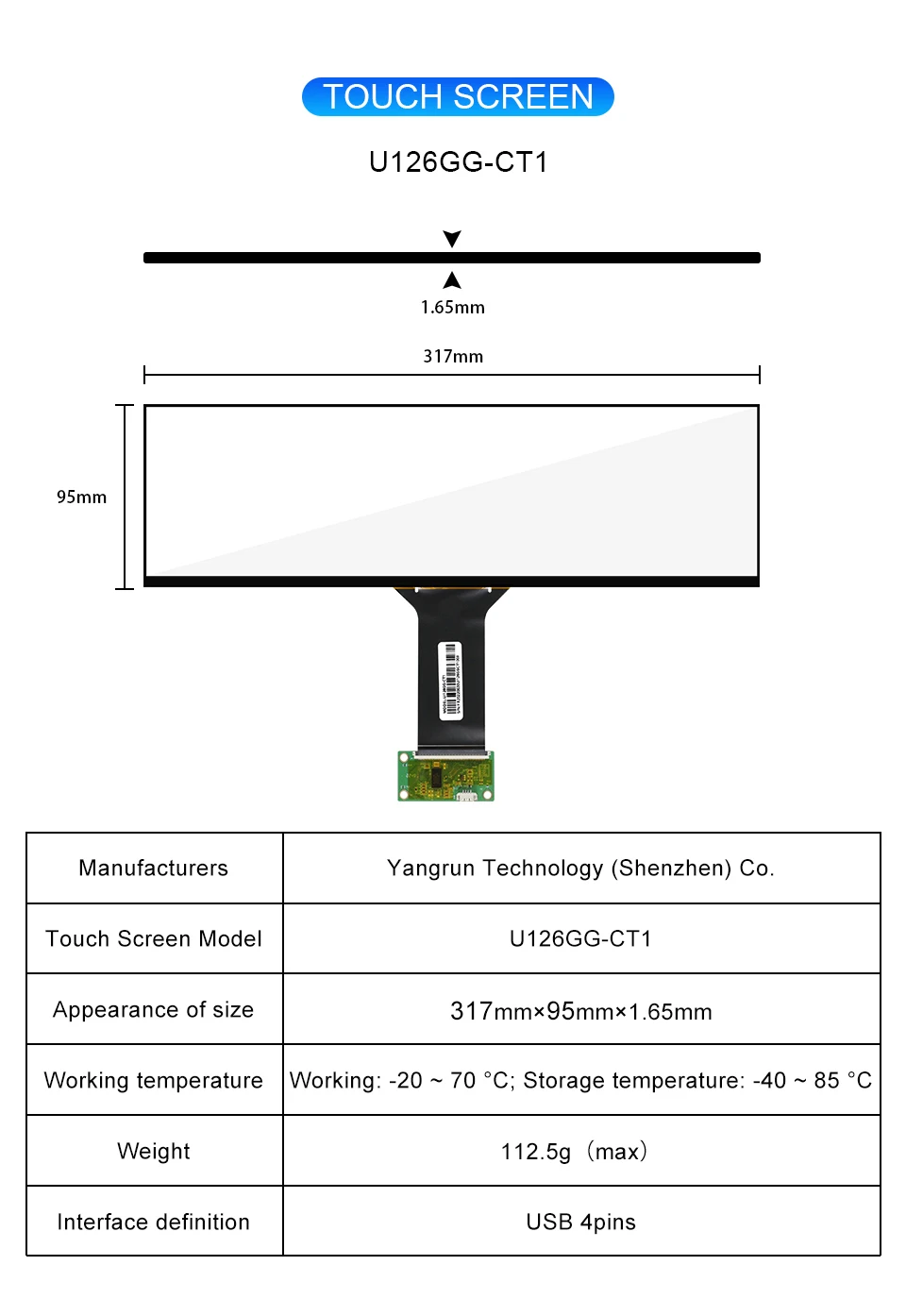 12.6 인치 1920x515 해상도 EDP 30PIN 인터페이스 400 밝기
