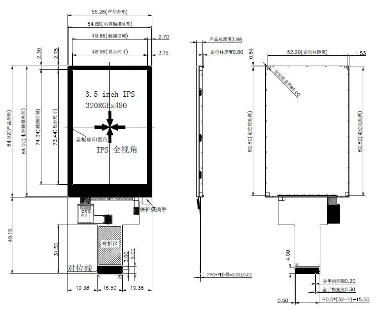 터치 LCD 개요 치수: 55.26*84.52*3.88mm