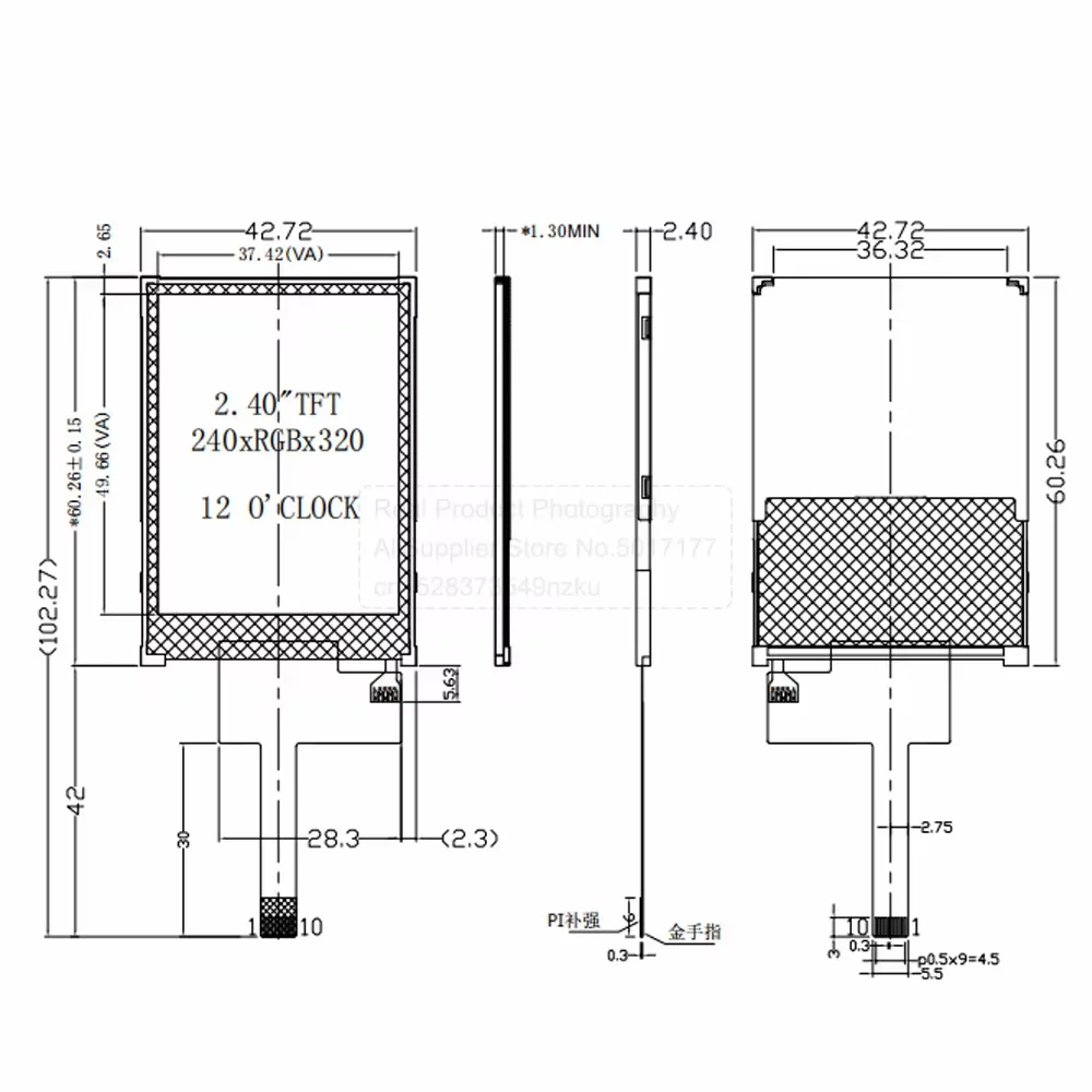 2.4 인치 TFT LCD 화면 디스플레이 SPI 직렬 포트 240*320 ST7789V 드라이브 IC 10Pin TFT LCD 디스크 영화 재생
