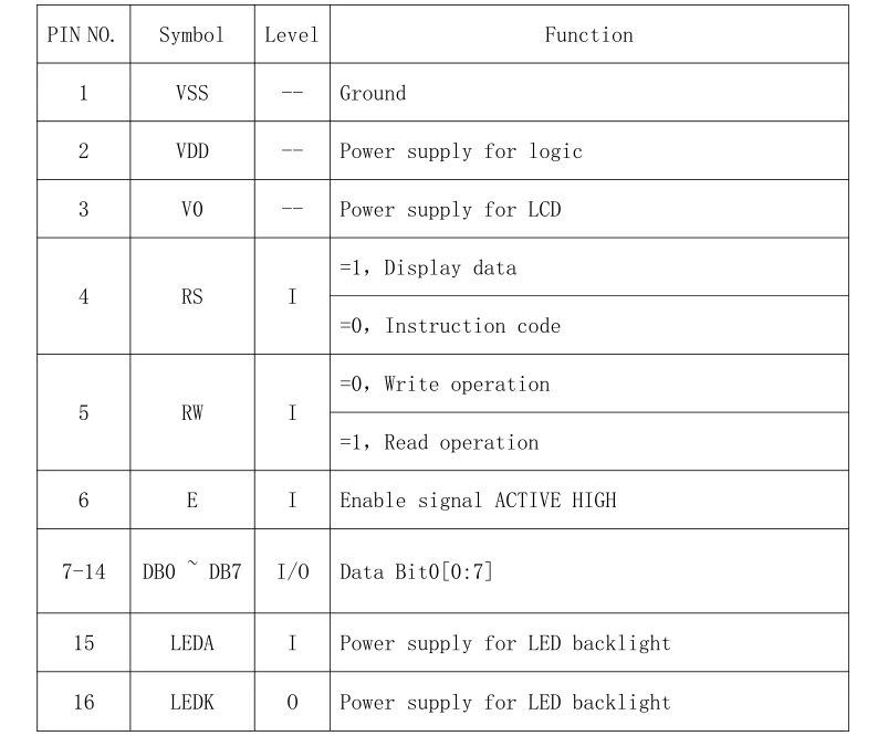 제품 특징: 4 라인 표시 가능, 각 라인 20 문자 도트 매트릭스 액정 디스플레이 모듈, 지원 4 또는