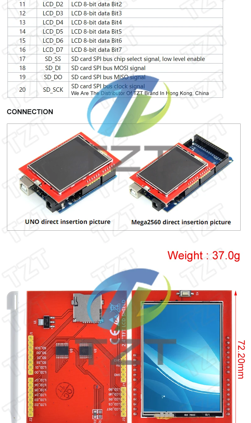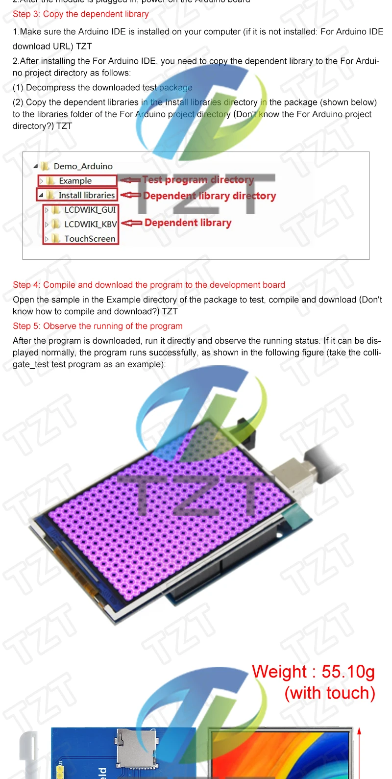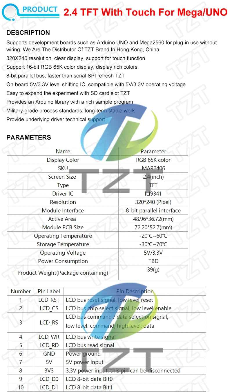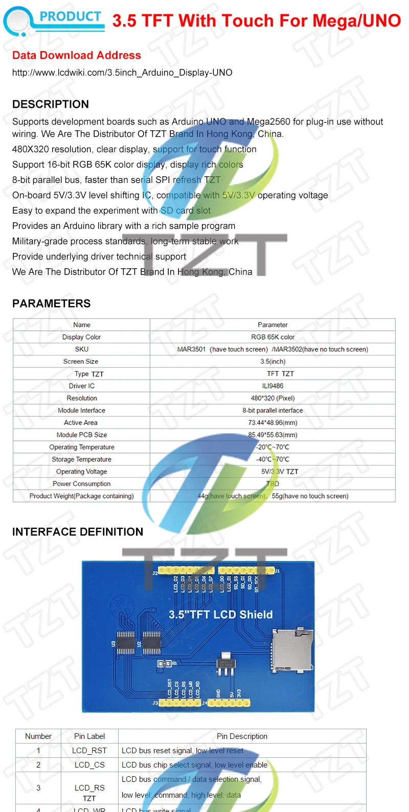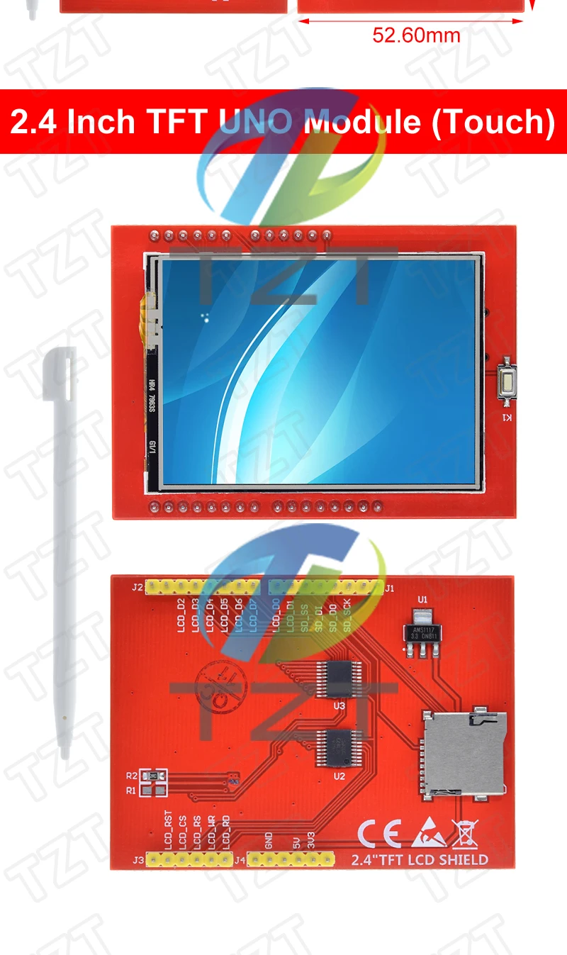 TZT SPI TFT LCD 스크린 다채로운 터치 디스플레이 모듈 인터페이스 SPI ILI9341 ILI9488 480320 240320 2.