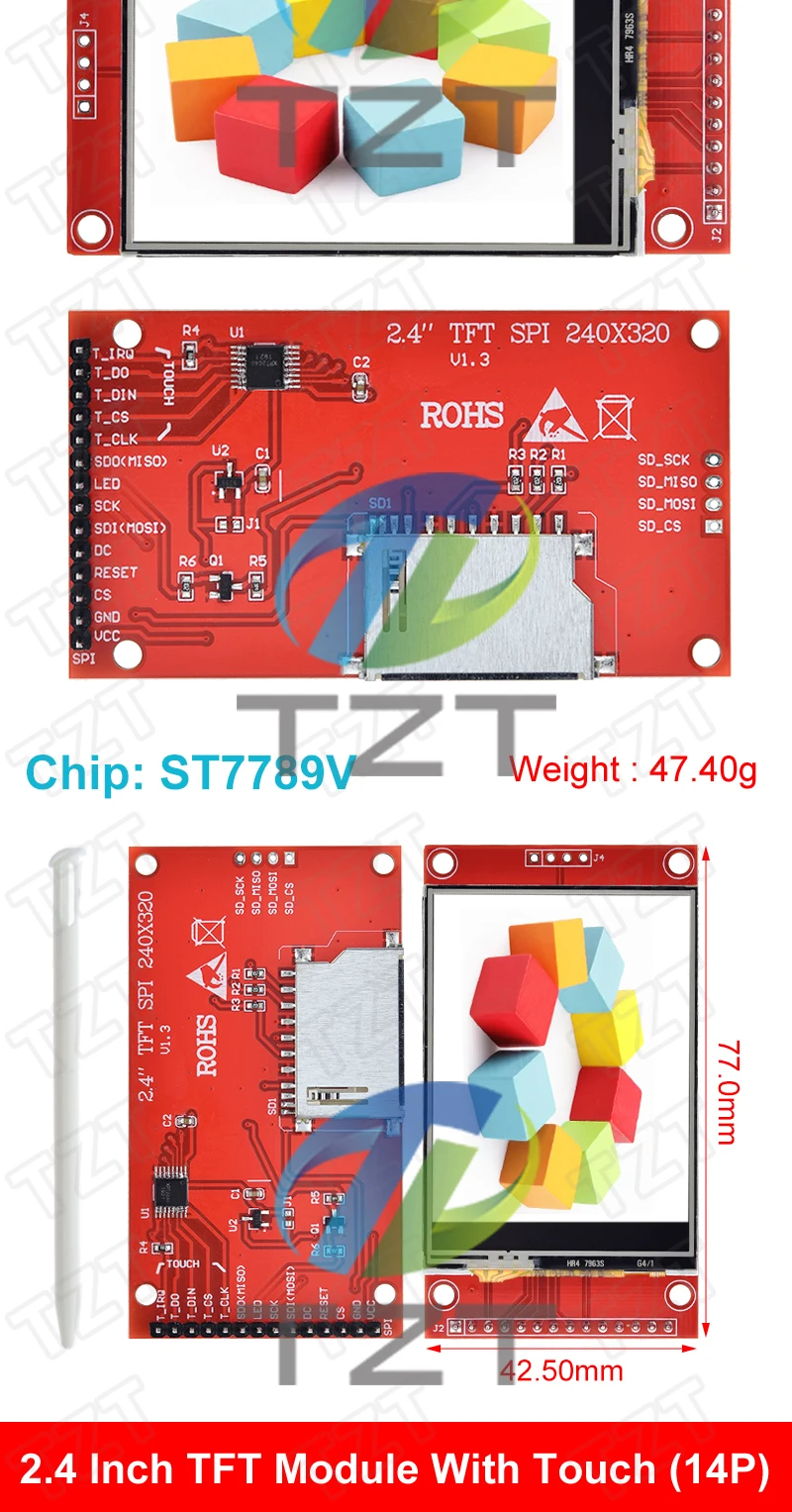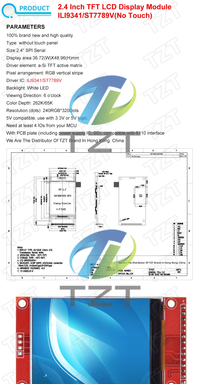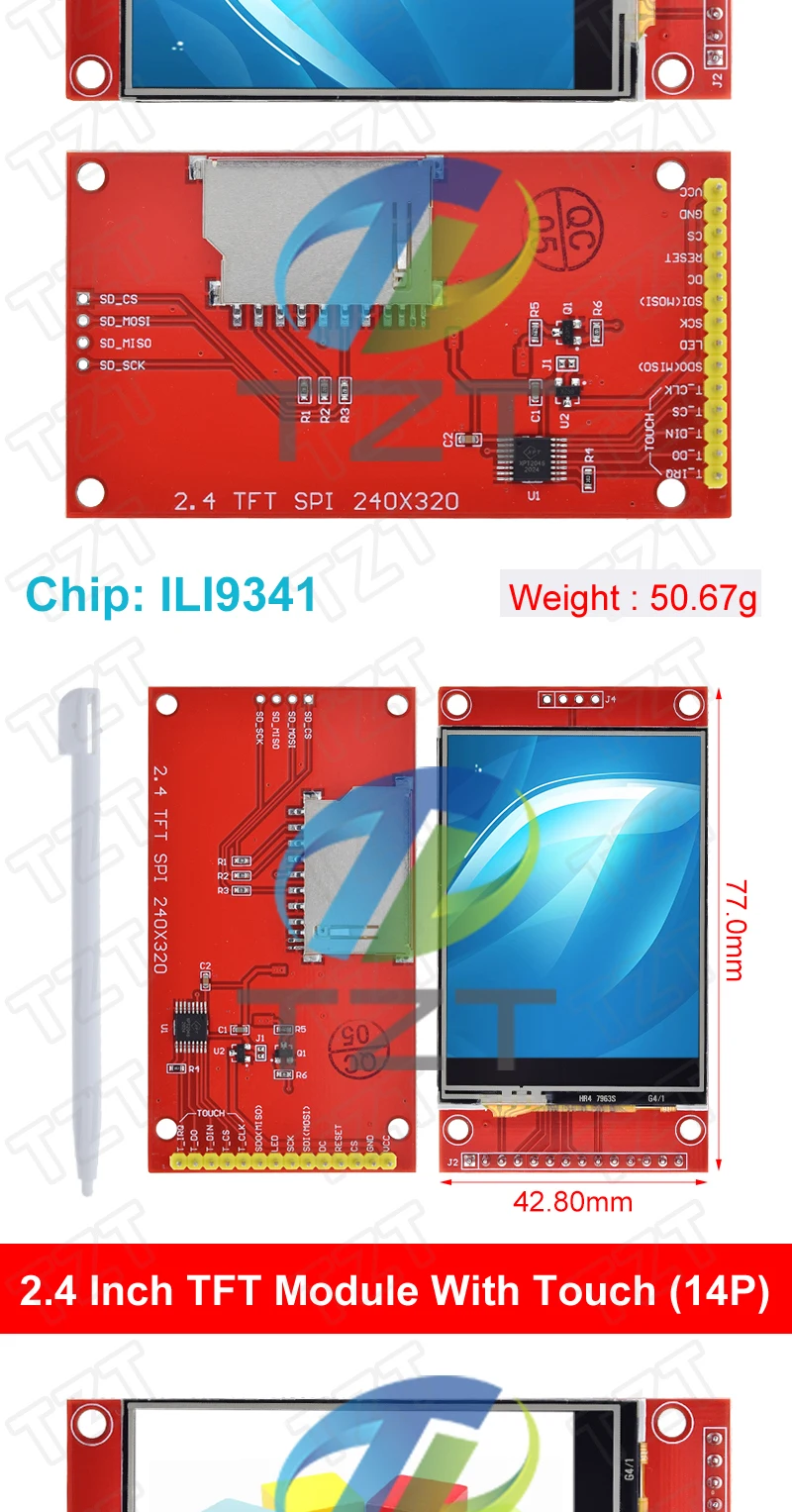 TFT 컬러 스크린 LCD 디스플레이 모듈 드라이브 ST7735 ST7789V ILI9225 ILI9341 인터페이스 SPI 240x320 1