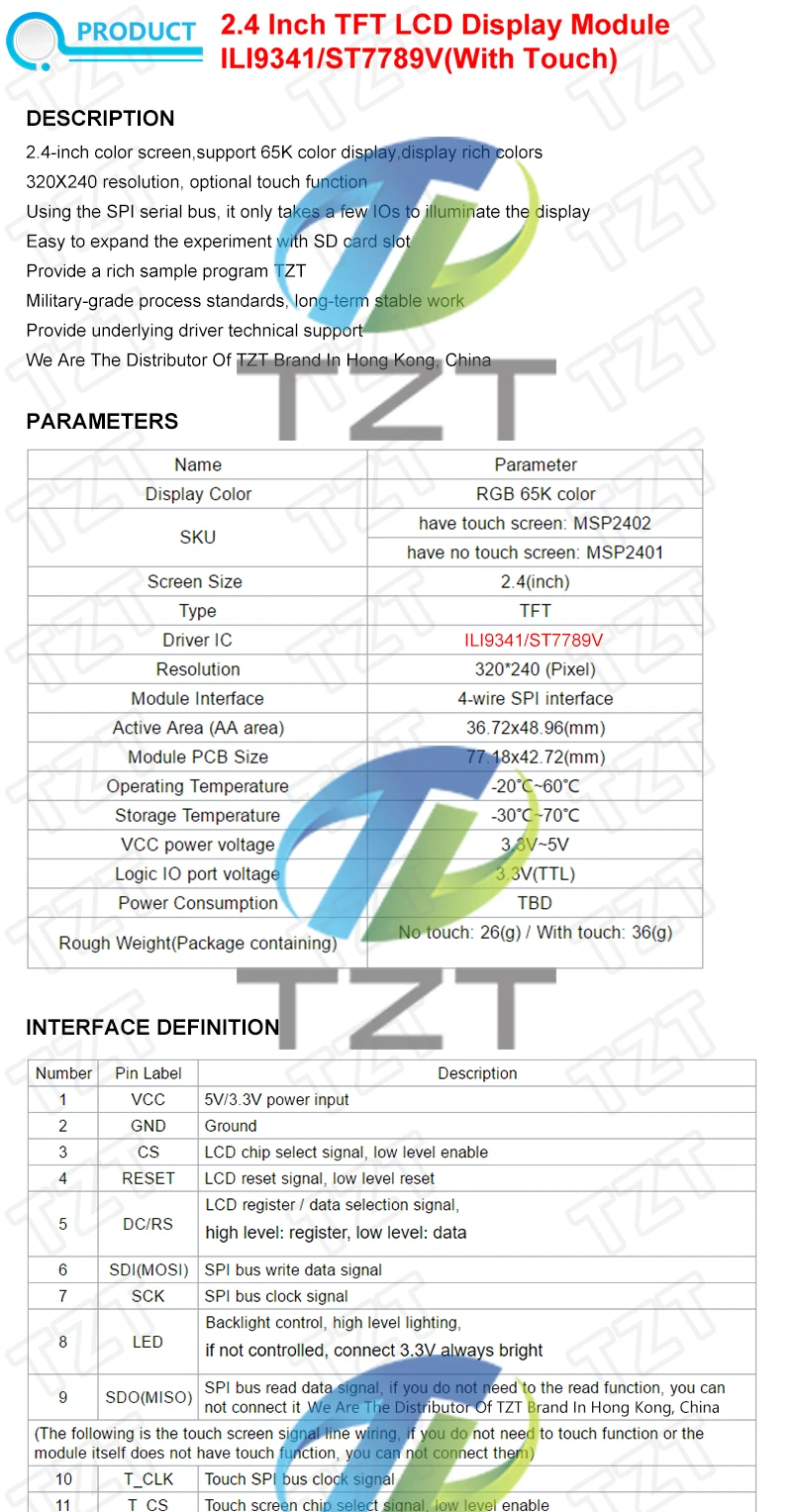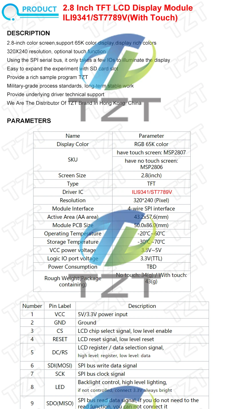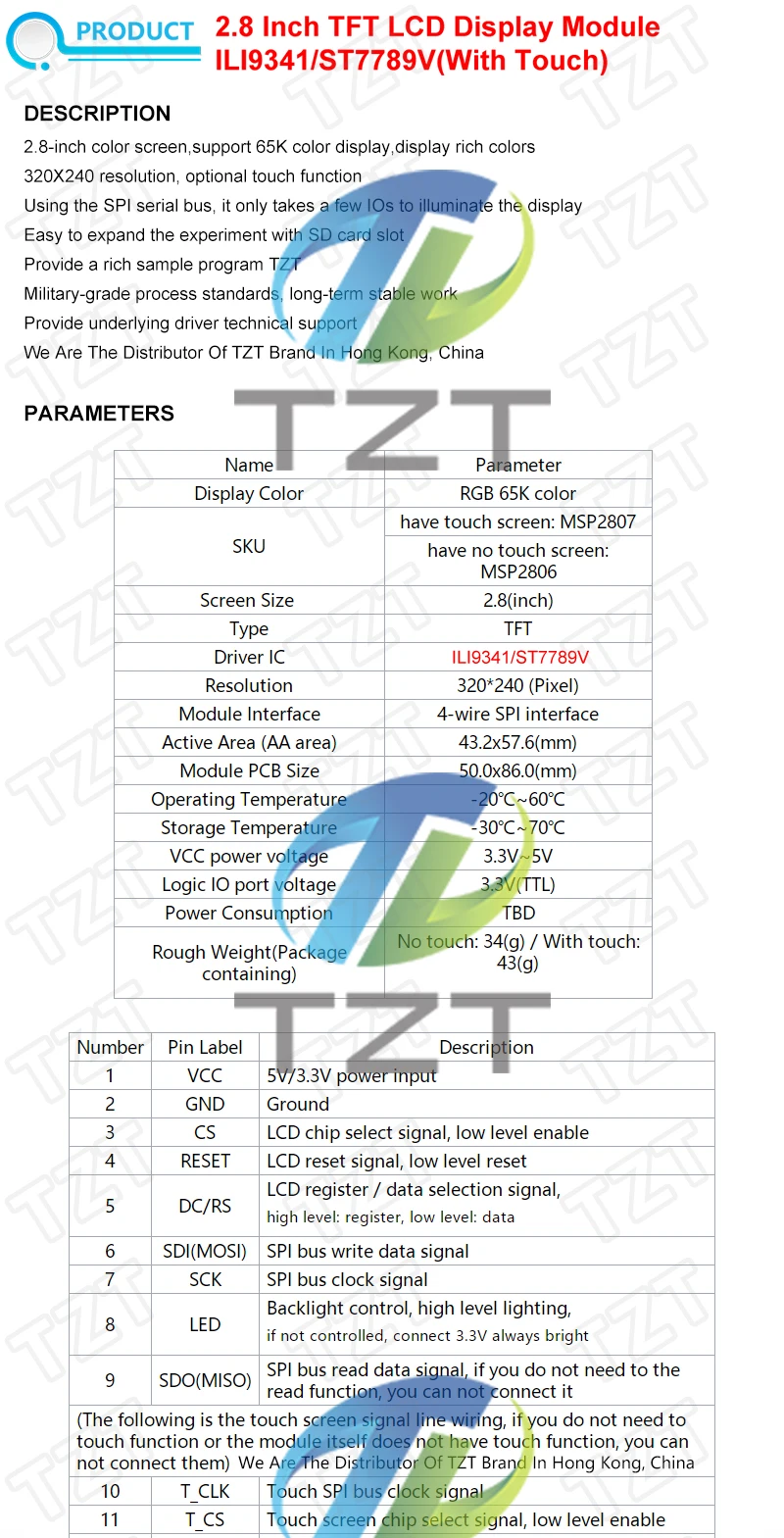 TFT 컬러 스크린 LCD 디스플레이 모듈 드라이브 ST7735 ST7789V ILI9225 ILI9341 인터페이스 SPI 240x320 1