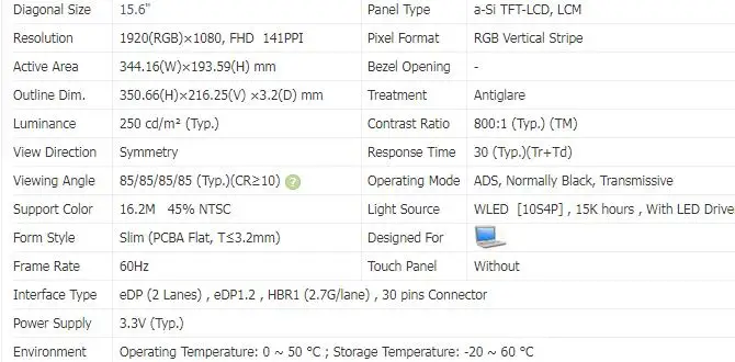 Innolux N156HCAEAB N156HCA EAB 교체용 IPS 스크린 LED 디스플레이 매트릭스 노트북용 156 인치 1920x1080