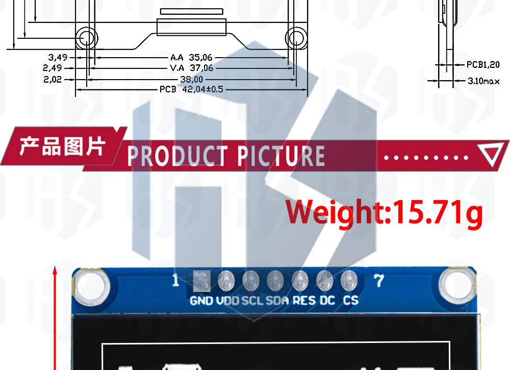 1.54 인치 7PIN 백색 파란 OLED 스크린 단위 SSD1309 드라이브 ic는 SSD1306 SPI 공용 영역을 위해 호환이