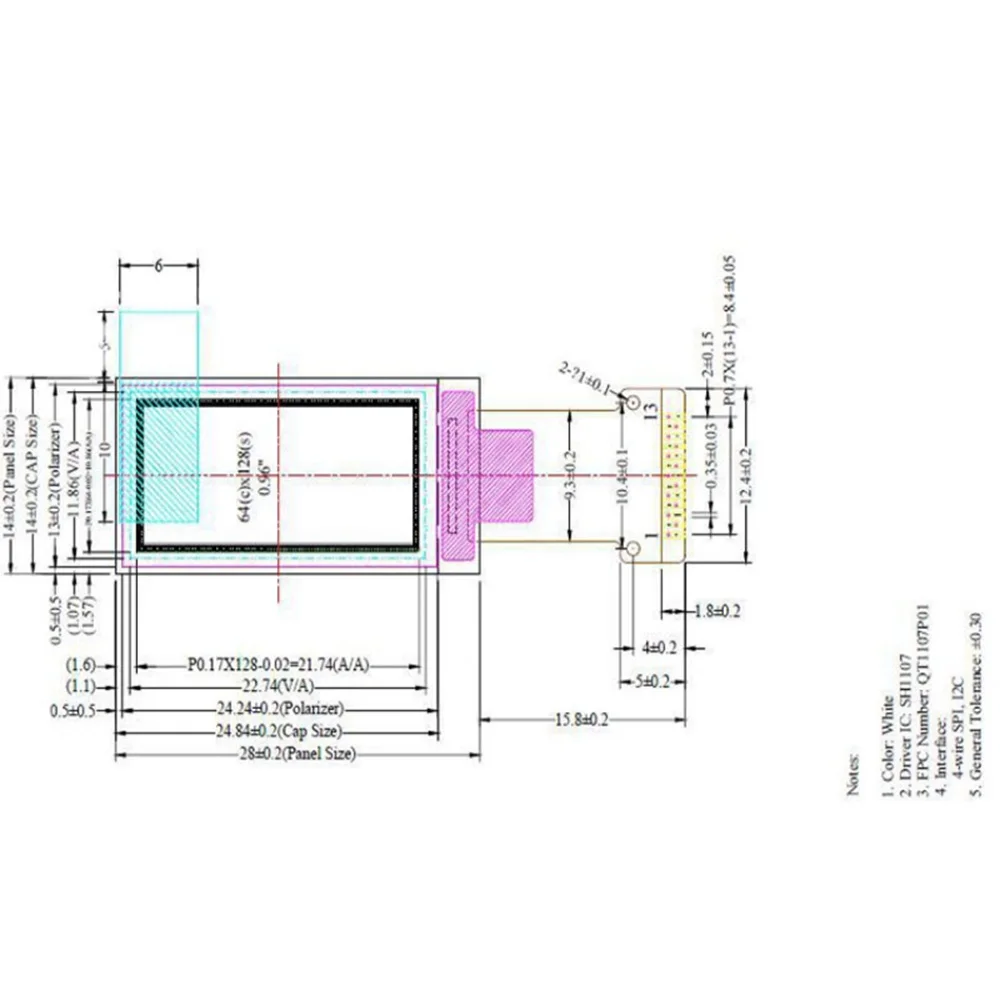 OLED LCD LED 디스플레이 모듈 IIC SPI 인터페이스 0.96 인치 스크린 128x64 SH1107
