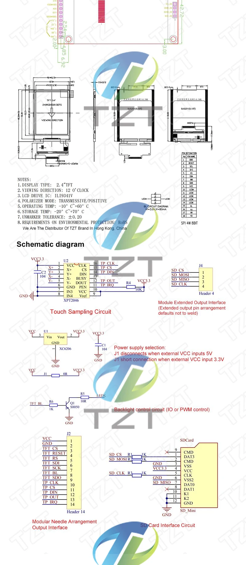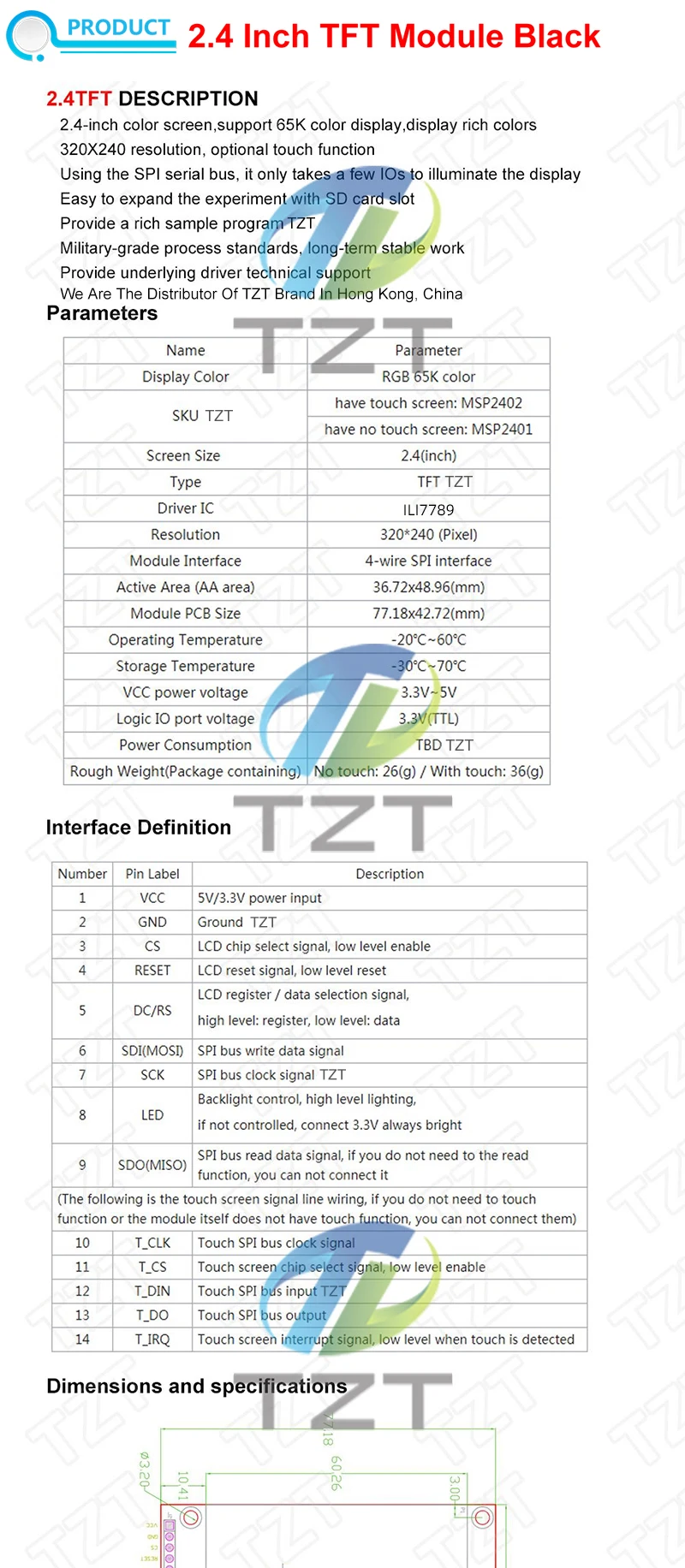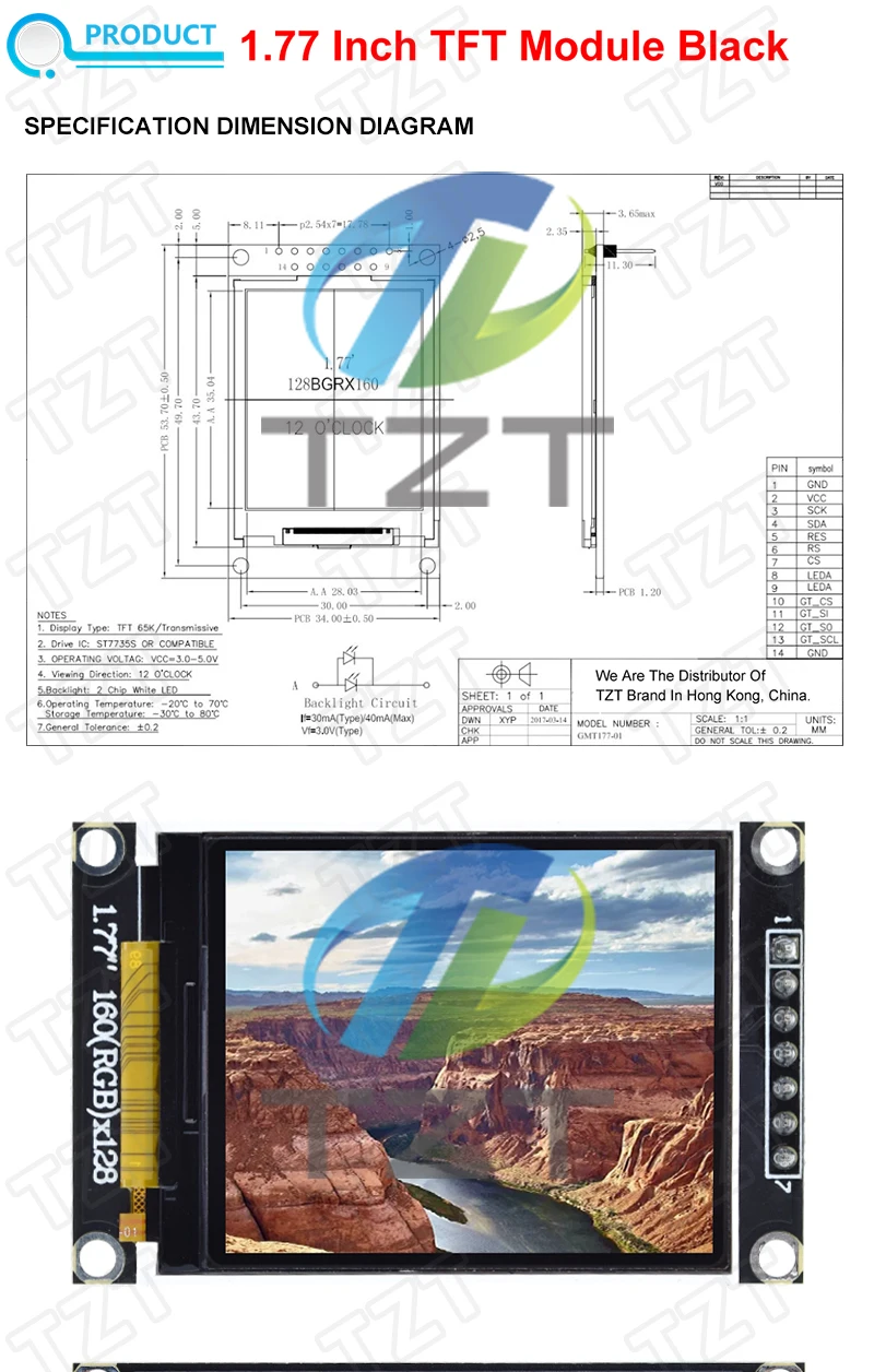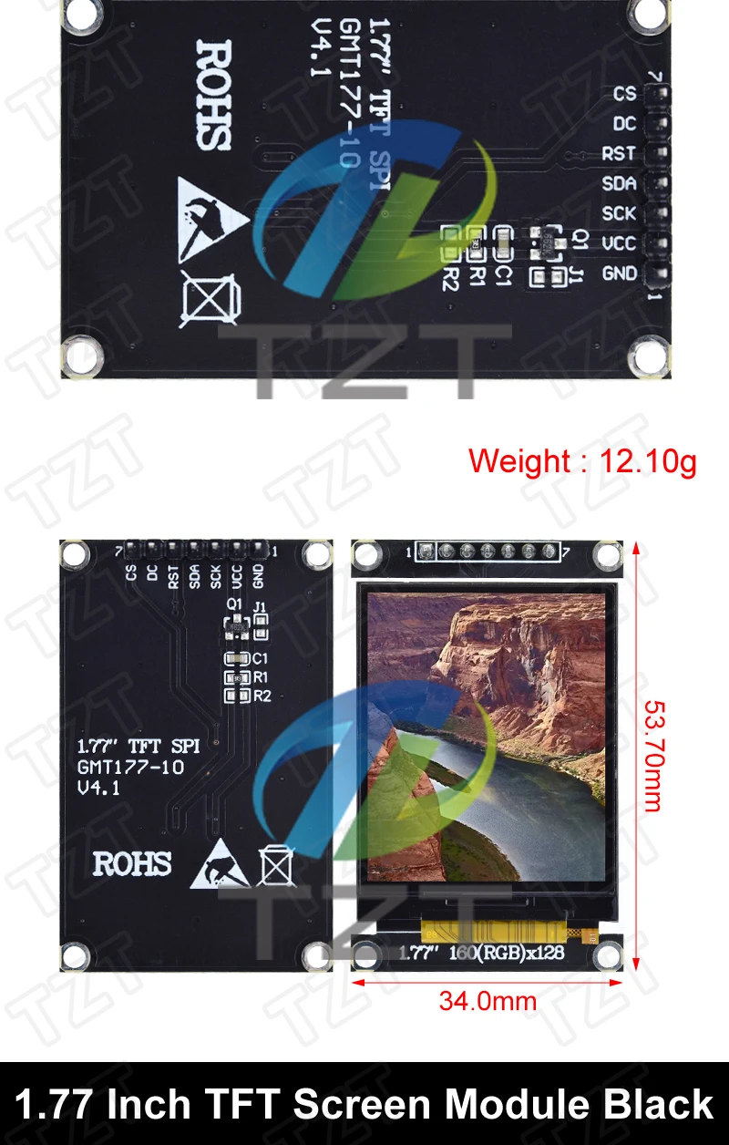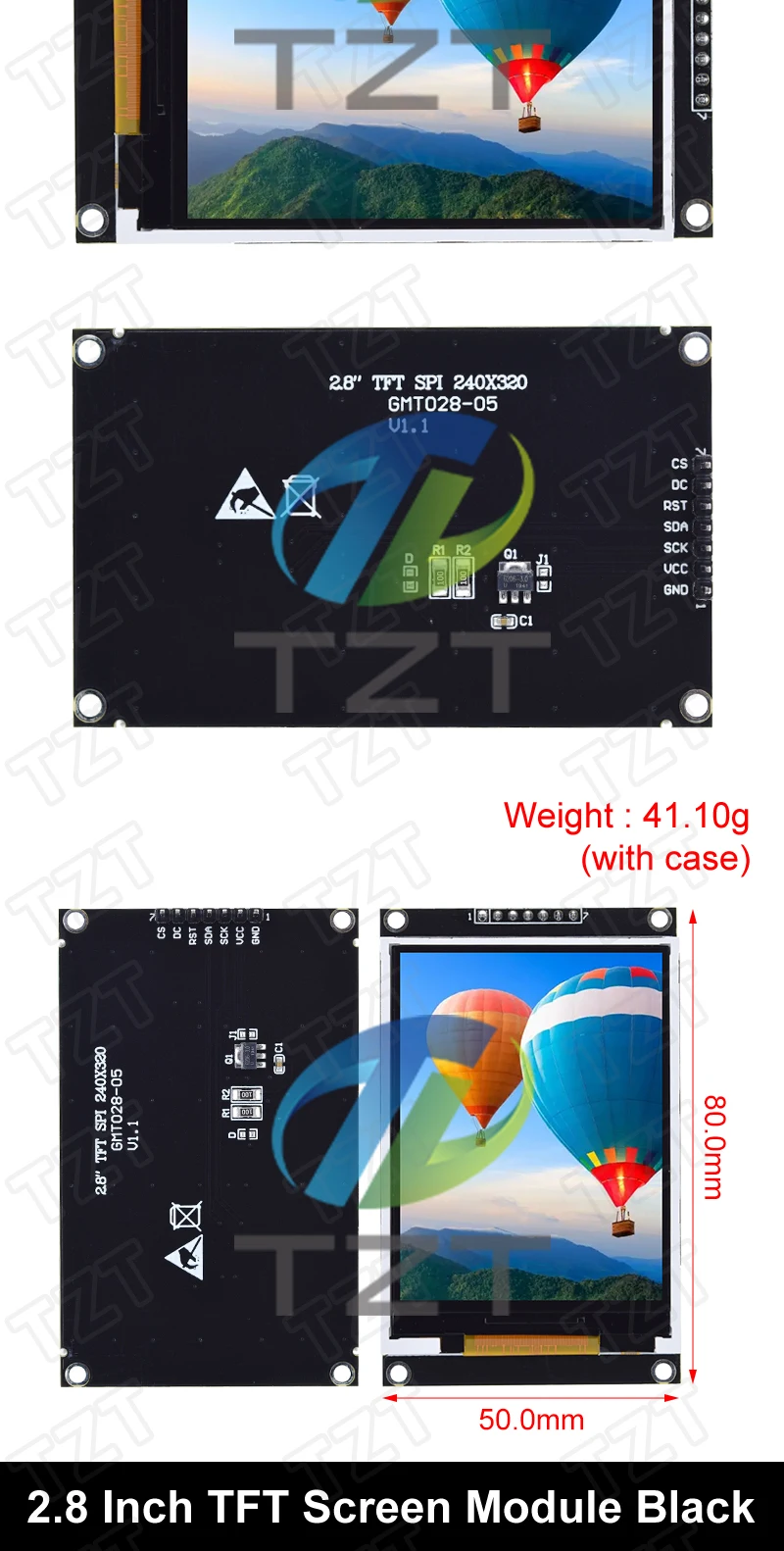 TZT TFT 컬러 스크린 LCD 디스플레이 모듈 드라이브 ST7735 ST7789 인터페이스 SPI 128x128 240x320 1.44