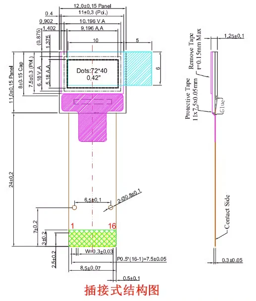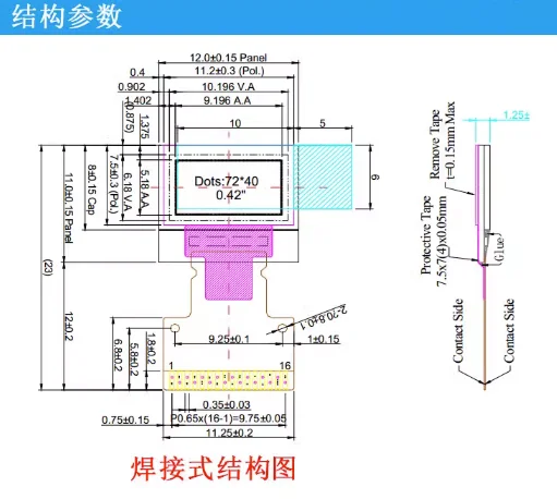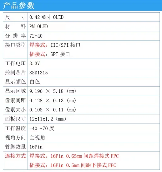 ICC SPI LCD 모듈 OLED 디스플레이 화면 OLED 모듈 72x40 제어 칩 SSD1315 0.42 인치 16 핀