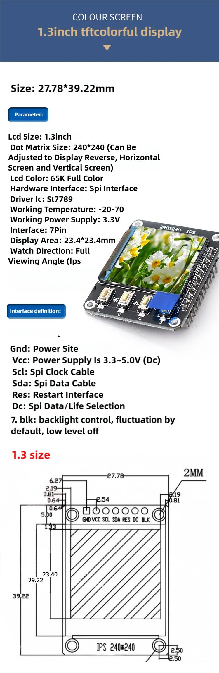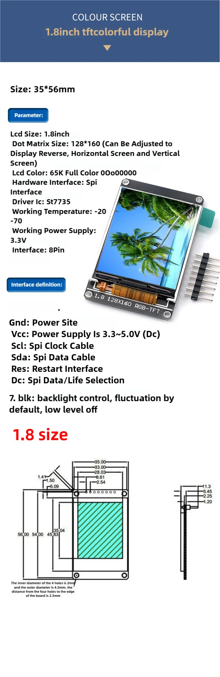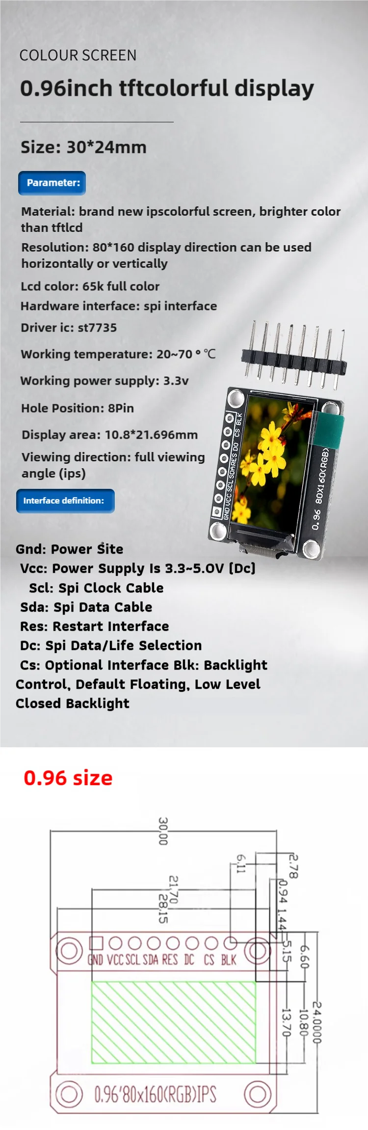 TFT 디스플레이 풀 컬러 LCD 모듈 0.96 1.3 1.44 1.8 인치 IPS 7P SPI HD ST7735 ST7789 드라이브 IC 80x16
