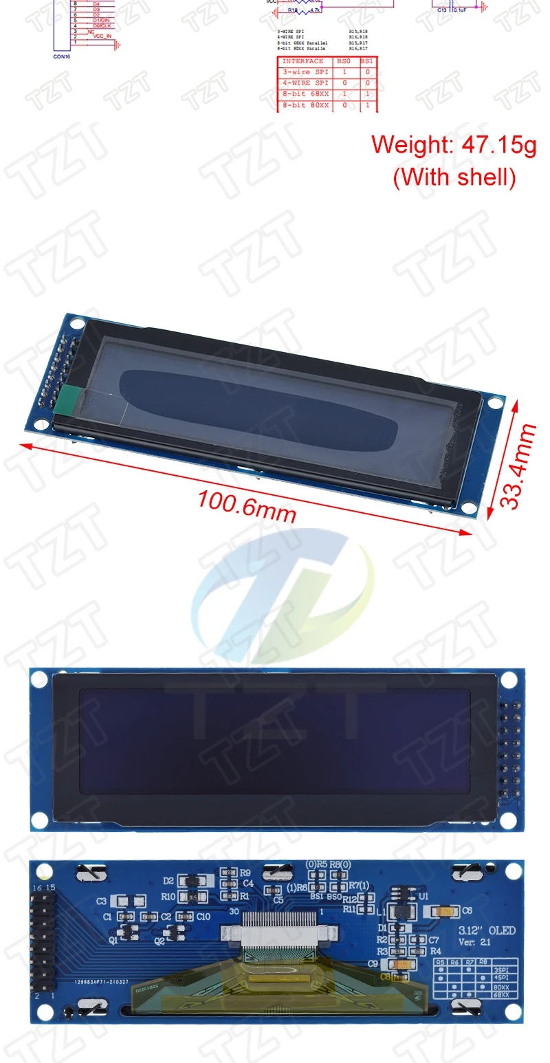 TZT 리얼 OLED 디스플레이 3.12 인치 256x64 25664 도트 그래픽 LCD 모듈 디스플레이 스크린 LCM 스크린 SS