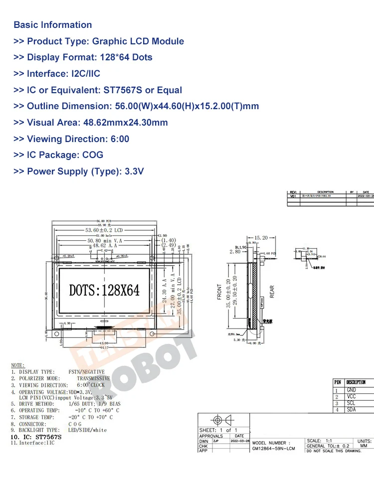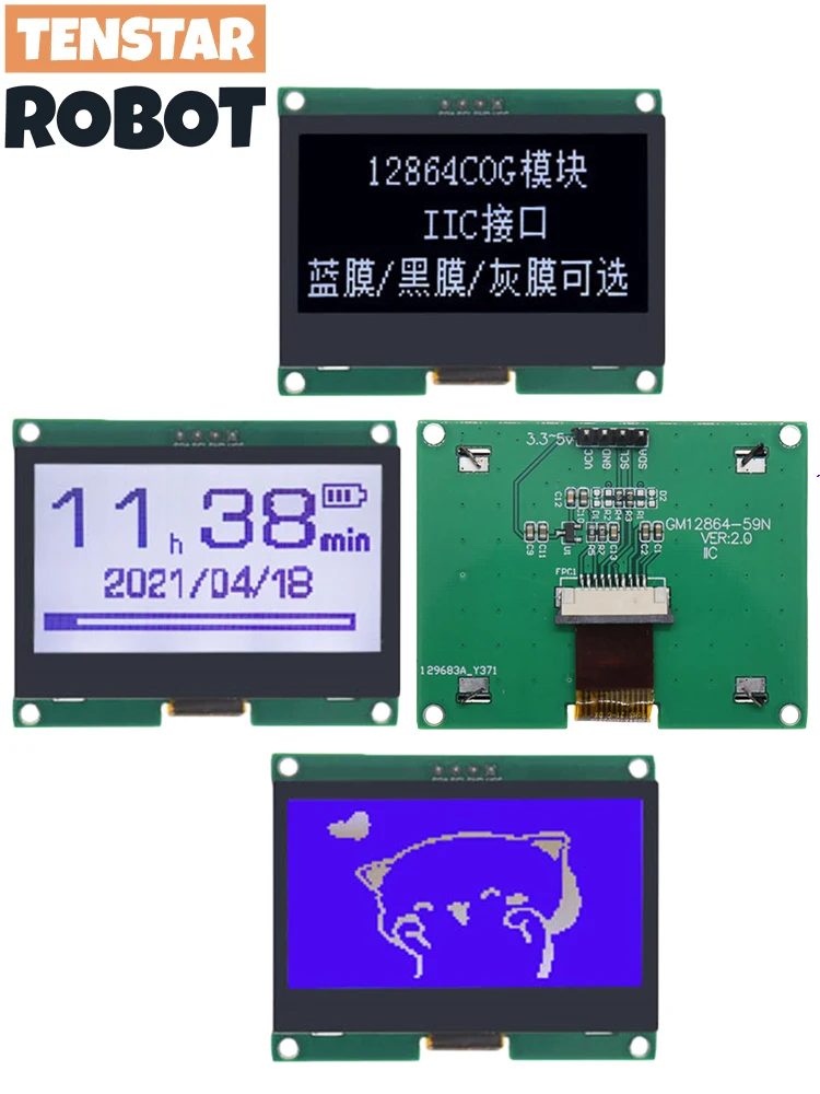 TENSTAR 그래픽 디스플레이 스크린 보드 LCM 패널 128x64 도트 매트릭스 스크린 IIC 4P LCD 모듈 I2C ST756