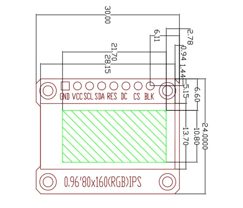 디스플레이 포맷 그래픽 80RGB * 160 도트 매트릭스