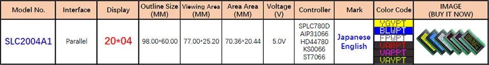 >> 모델 번호: SLC2004E-FPCPT >> PCB 크기: 98.00X60.00MM >> 디스플레이 유형: FSTN 양성 >> 백라이트 유형: RGB LED 백라이트 |