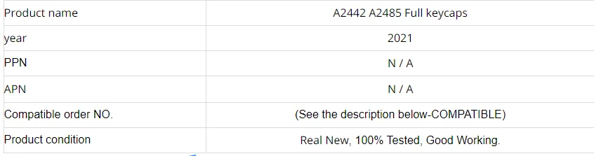 새로운 A2442 A2485 Keycaps Macbook Pro M1 Pro Max Retina 14 16 Late 2021 키보드 수리 용 미국영국프랑