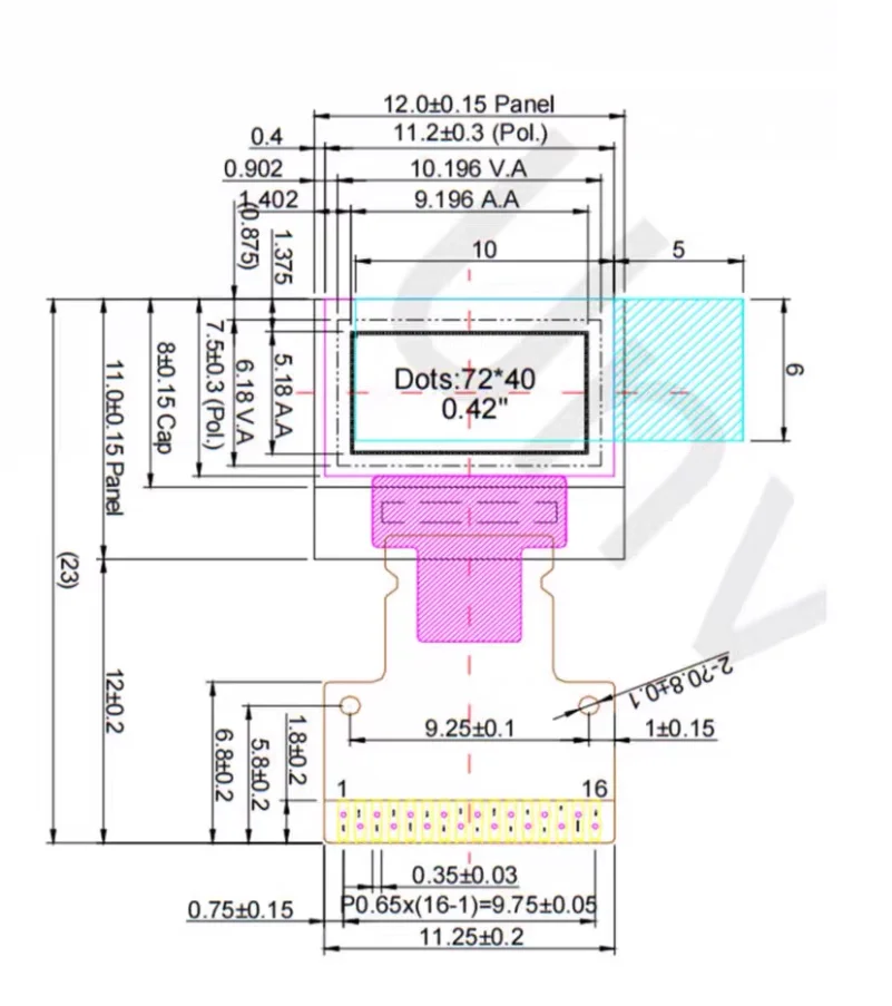이 화면은 다른 0.42 인치 화면과 다릅니다. 화면의 시작점은 12864 (13, 14) 입니다.