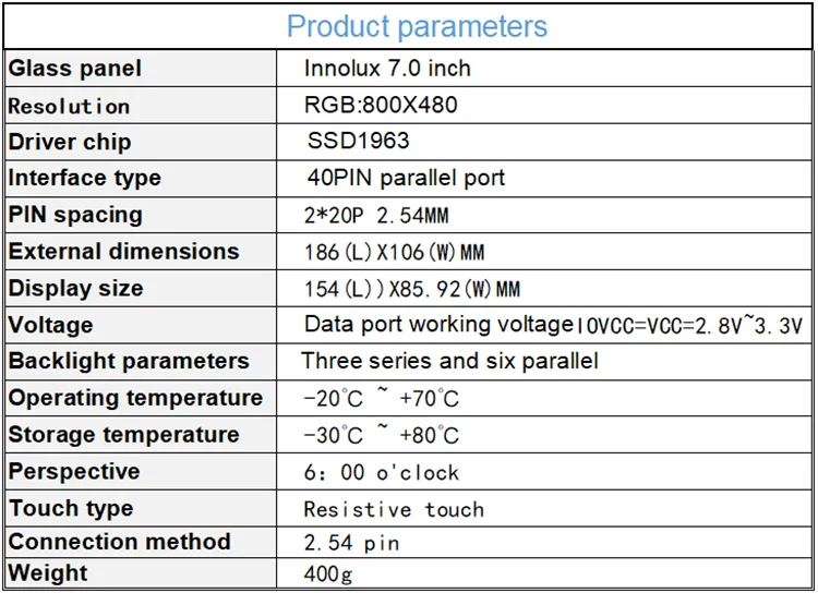 7.0 "TFT LCD 모듈, 해상도 800x480, SSD1963 컨트롤러